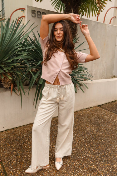 Sasha Natural Wide Leg Drawstring Pants