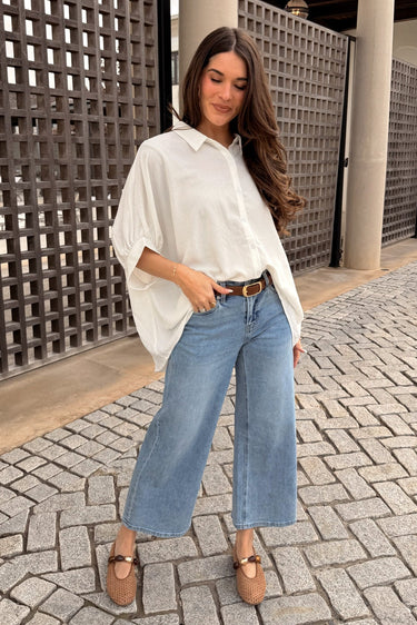Evie Off White Button-Up Top