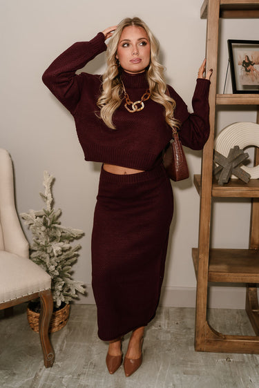 Whether paired with the matching Raelyn Knit Sweater for a coordinated, chic look or styled with a simple tee or blouse for casual sophistication, this knit skirt is a versatile outfit staple. Soft, stylish, and easily wearable, the Raelyn Plum Purple Knit Skirt brings warmth, comfort, and understated elegance to every outfit.
