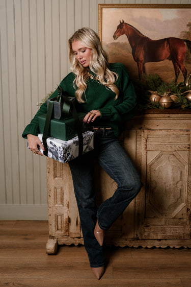 Selah Dark Green Mock Neck Knit Sweater