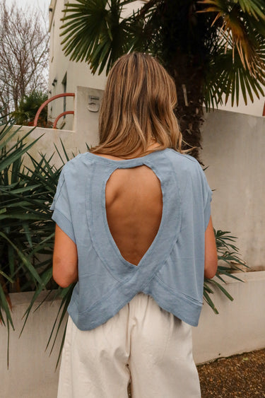 Rachelle Light Blue Open Back Tee