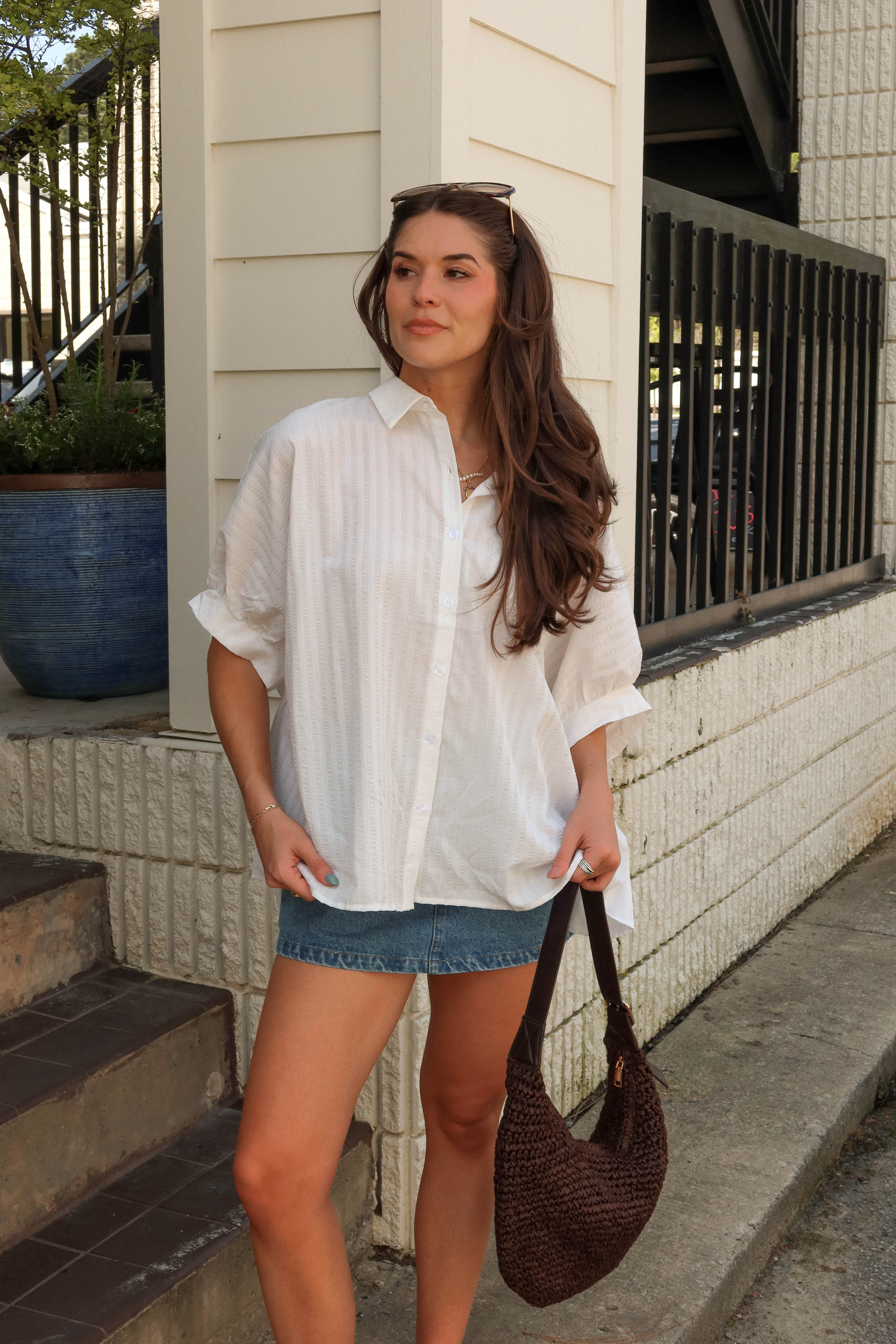 Fresh, classic, and effortlessly versatile, the Alanna White Stripe Button-Up Top is a timeless wardrobe staple designed for easy, everyday styling. Crafted from lightweight white fabric, it features a subtle stripe print that adds a clean, polished touch while keeping the look light and breathable.