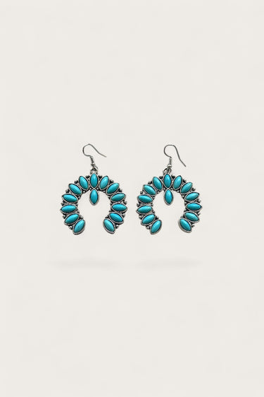 Turquoise & Silver Stone Earrings add vibrant color and effortless style to any jewelry collection. First, the U-shaped dangles feature striking turquoise stones. Next, delicate silver accents enhance the design with subtle shine. Additionally, the combination of bold color and metallic detail creates a modern, boho-inspired look. Meanwhile, the lightweight construction ensures comfortable all-day wear. As a result, these earrings elevate casual or evening outfits with ease.