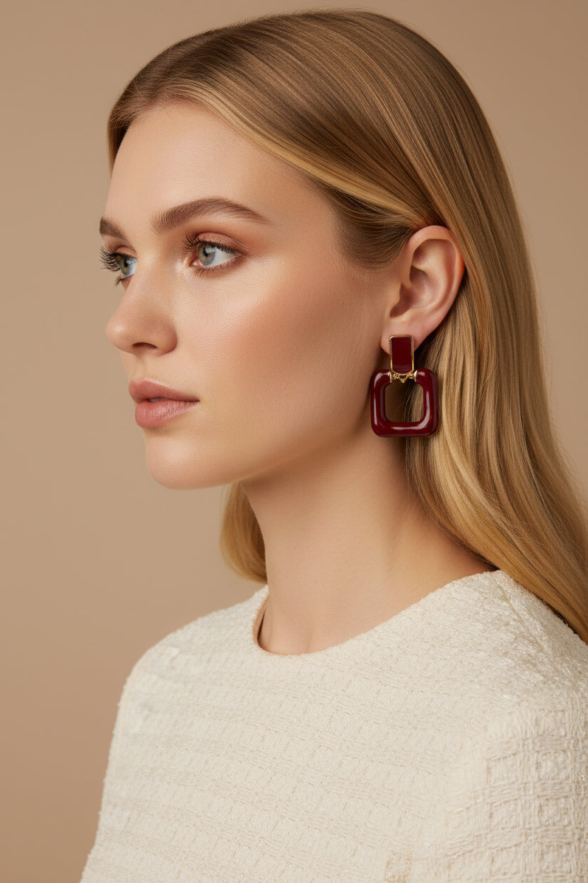Elevate your style with the Vera Burgundy & Gold Square Dangle Earrings—a perfect blend of elegance and modern flair. Featuring rich burgundy square-shaped dangles, each earring is accented with delicate gold details that catch the light beautifully. Lightweight and versatile, these earrings effortlessly complement both casual and formal outfits, adding a touch of sophistication to any look.