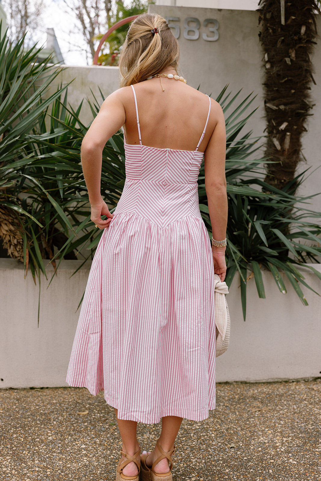 Brynlee Pink & White Stripe Midi Dress