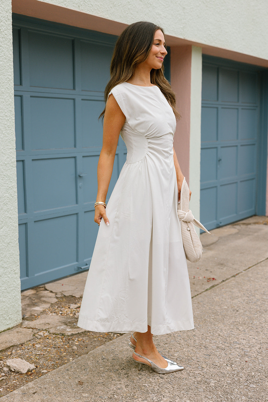 Nora Ecru Cinched Waist Midi Dress