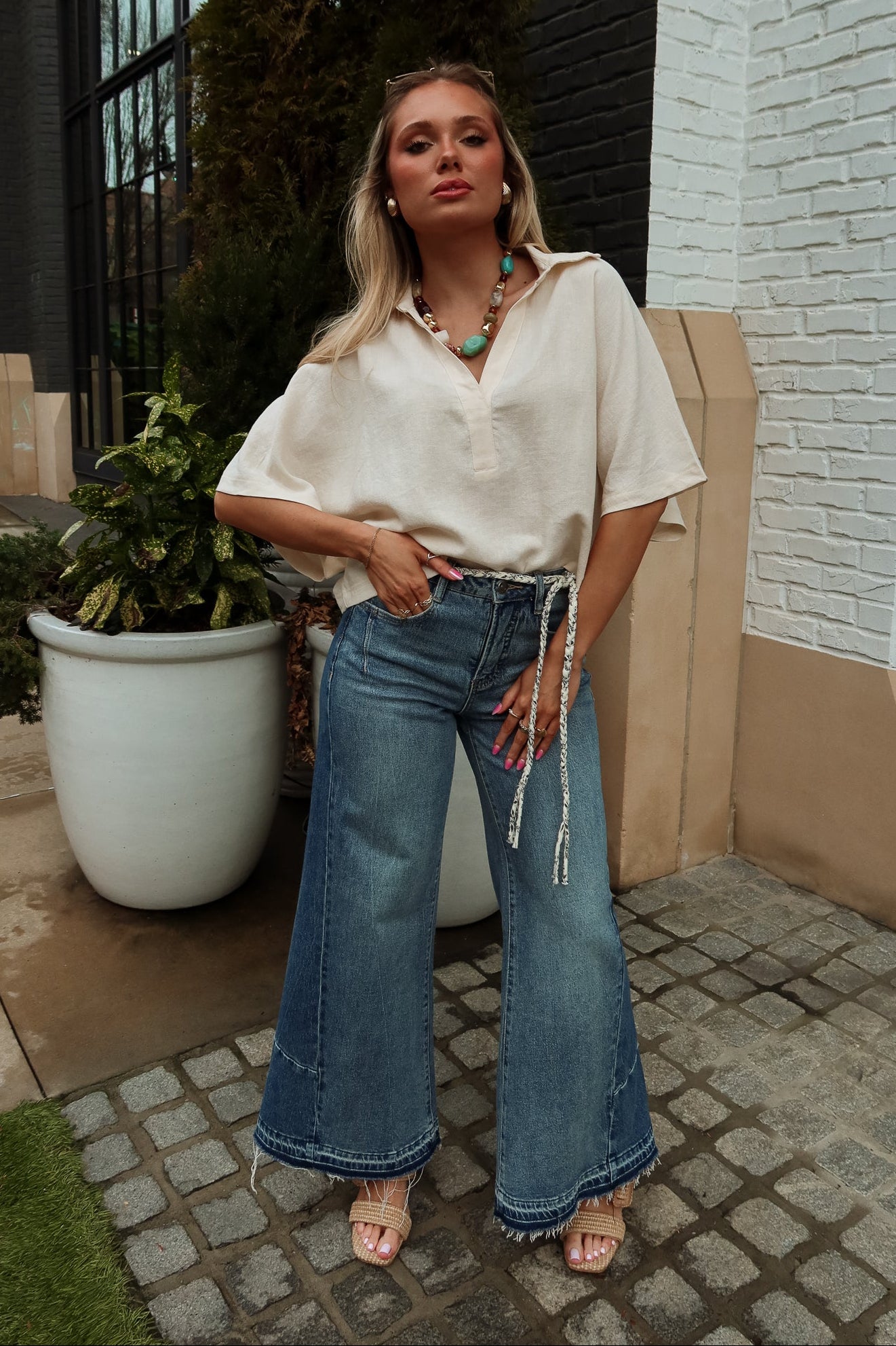 Clean and effortlessly polished, the Tinsley Cream Collared Short Sleeve Top is a modern staple for everyday styling. Crafted from lightweight cream fabric, this top features a flattering cropped waist that pairs perfectly with high-rise bottoms. The V-neckline with collar detail adds a tailored touch, giving it a refined yet relaxed feel.