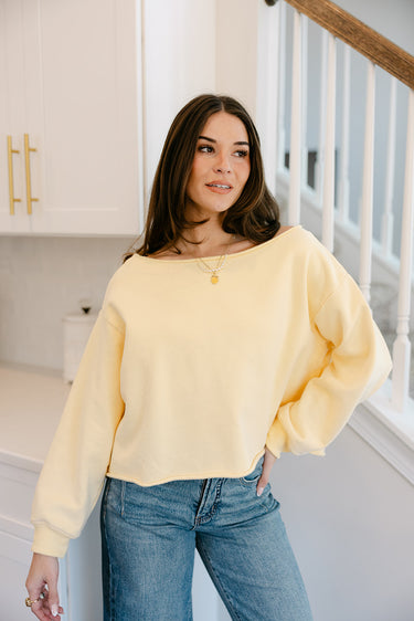 Easy to throw on and style, this pullover works seamlessly for laid-back weekends, casual outings, or cozy days at home. Dress it up with statement accessories or keep it simple for an understated look. Comfortable, stylish, and endlessly versatile, this pullover is a must-have staple that blends everyday ease with a fresh pop of soft, sunny color.