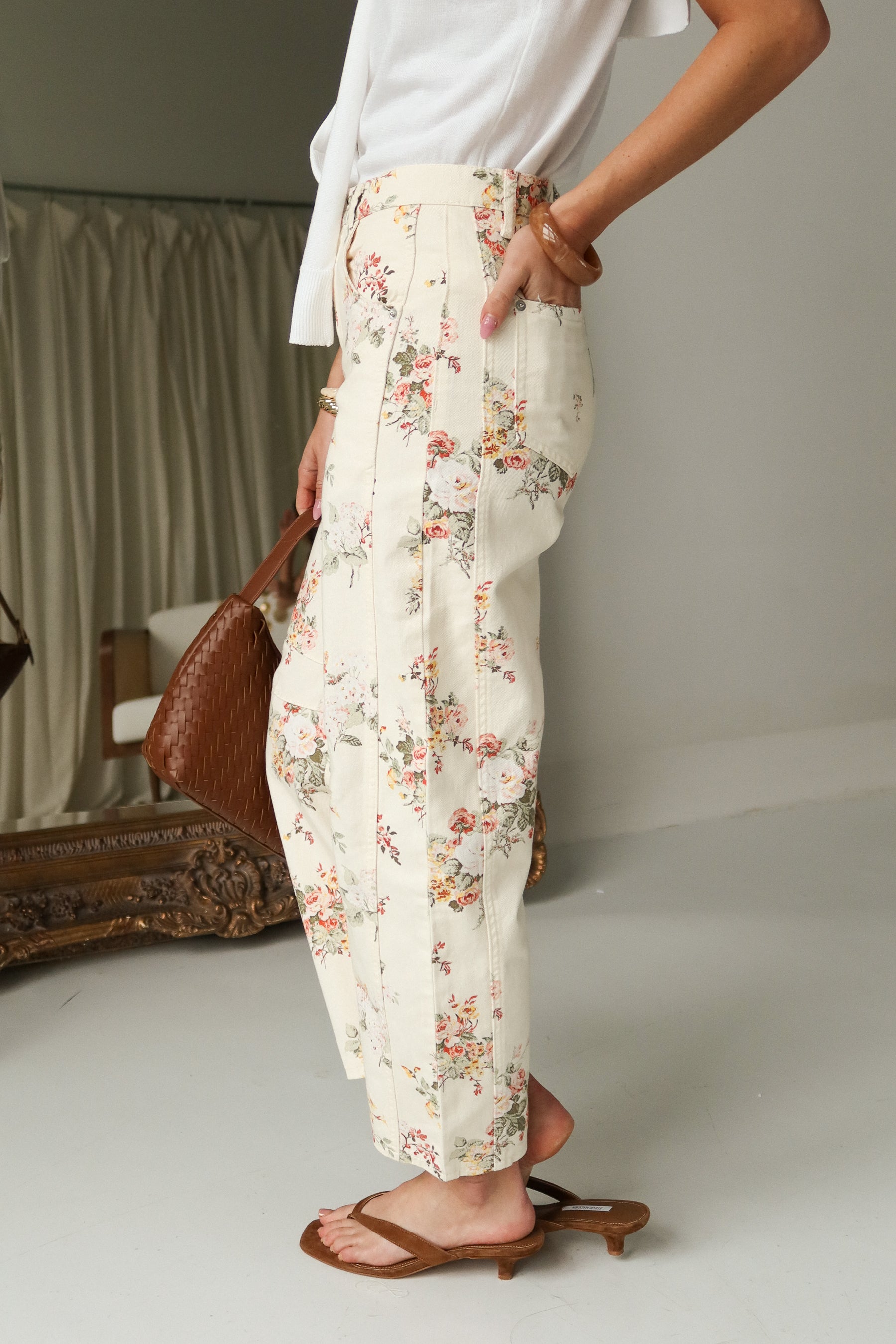 Hayden Cream Multi Floral Barrel Leg Pants