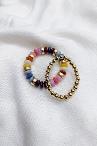 Add a stylish flair to your wrist with the Amelia Multi & Gold Beaded Bracelet Set, a two-piece set designed for versatility and charm. Each bracelet features stretchy layers adorned with a mix of vibrant multi-color and gold beads, complemented by sleek gold shiny beads for a hint of elegance. This bracelet set is perfect for stacking or wearing solo, making it a standout accessory for any occasion.
