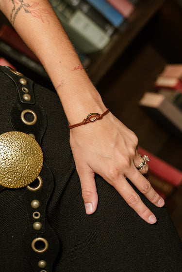 The Leah Gold Medallion Bracelet blends warm tones and eye-catching texture for a stylish finishing touch. It features a rich brown faux leather band accented with an open gold hammered medallion at the center. The medallion’s uneven open-circle design adds an artisanal feel that pairs beautifully with both casual and dressy outfits.