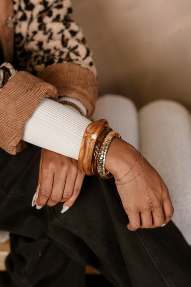 Wear the bangles together for a bold, coordinated look, or style them separately for a more subtle accent. Perfect for pairing with fall tones or adding warmth to year-round outfits, the Rory Bangle Set brings effortless sophistication to your accessory collection.