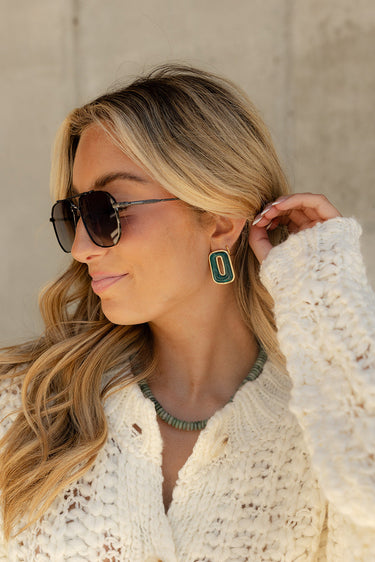 The Scarlett Green Marble & Gold Rectangle Earrings bring a refined pop of color to your style. They feature emerald green marble stones in a sleek rectangular shape, accented with elegant gold details for a timeless, polished look.