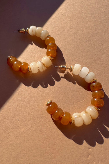 Shiloh Brown & Cream Beads Hoop Earring