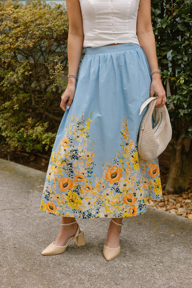 Perfect for brunch dates, garden parties, and warm-weather outings, the Ellie Blue Multi Floral Midi Dress is a timeless piece that brings graceful style to any occasion.
