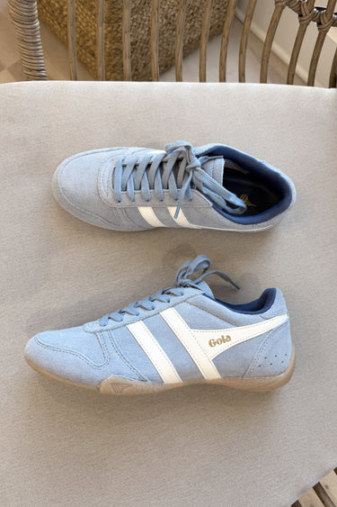 Fresh, sporty, and effortlessly cool — the Gola Chase Trainer Air Off White & Moonlight Sneaker brings a modern twist to a retro-inspired silhouette. Designed with a soft blue suede upper, this sneaker offers a subtle pop of color that feels both versatile and on-trend. Crisp white leather details add clean contrast for a polished finish.