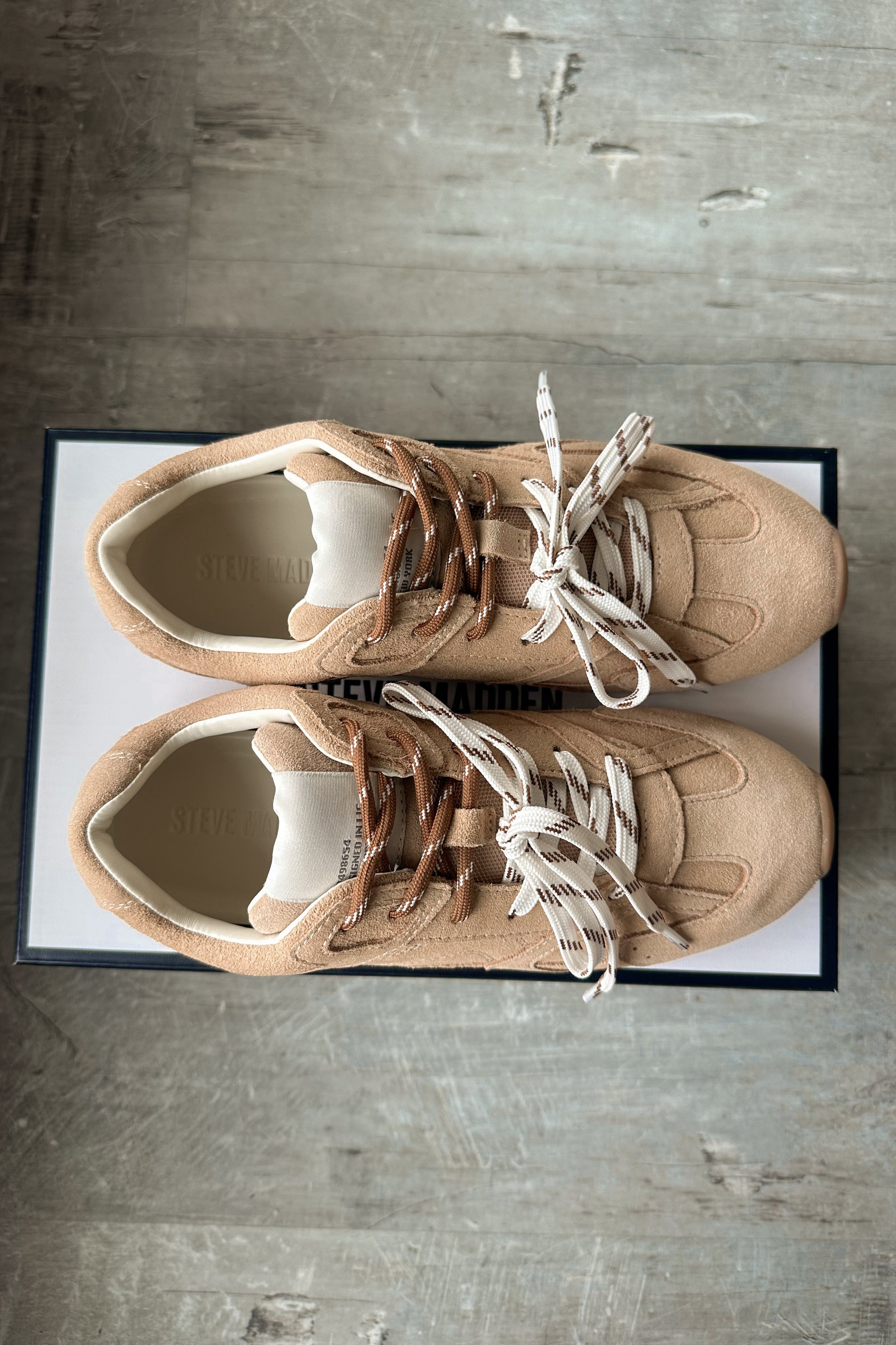 The Steve Madden Aziel Beige Sneaker delivers effortless style with a modern, elevated edge. Designed with a soft sand suede upper, this low-top sneaker brings a neutral, versatile look that pairs easily with both casual and polished outfits. The brown and white double lace-up detail adds a subtle contrast and eye-catching finish. It gives the shoe a unique, fashion-forward feel.
