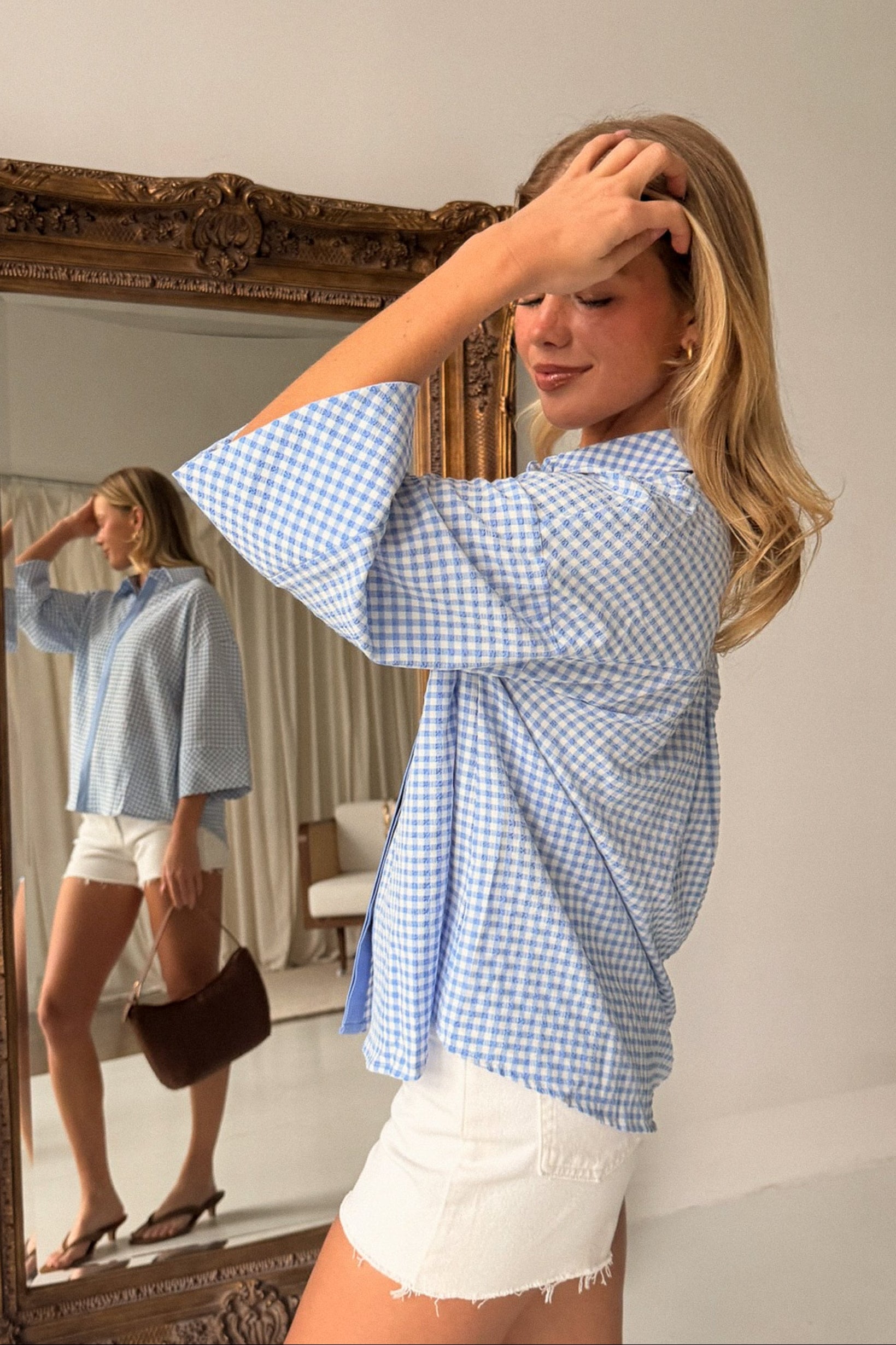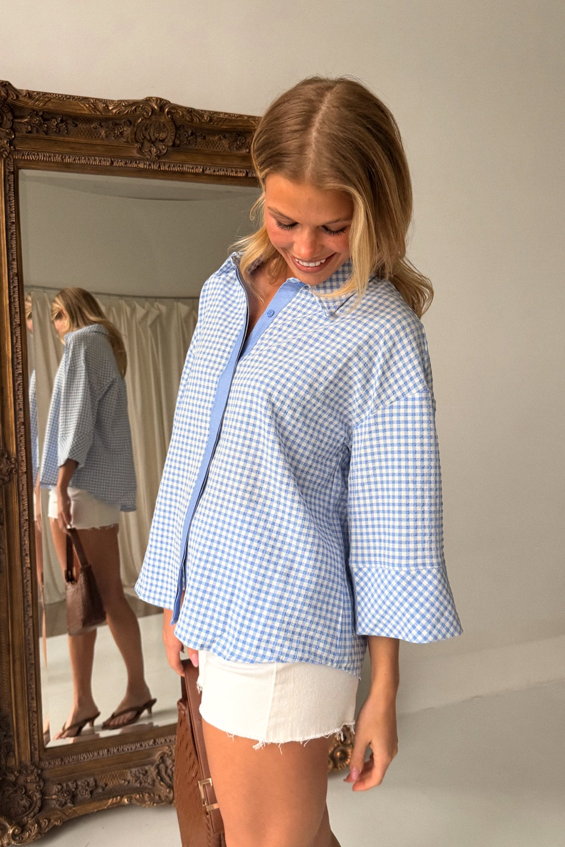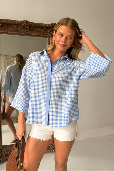 Mandie Blue & White Gingham Top