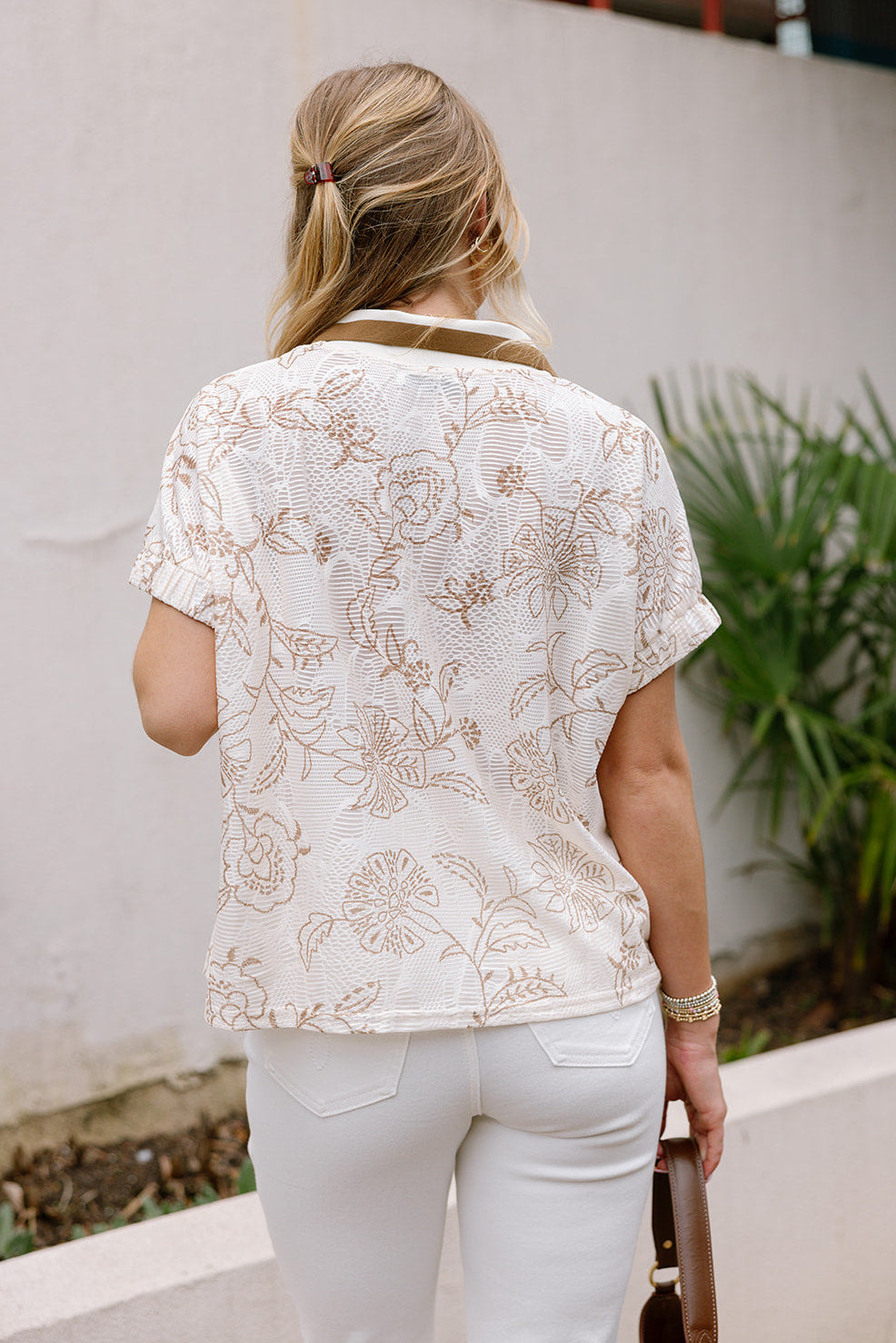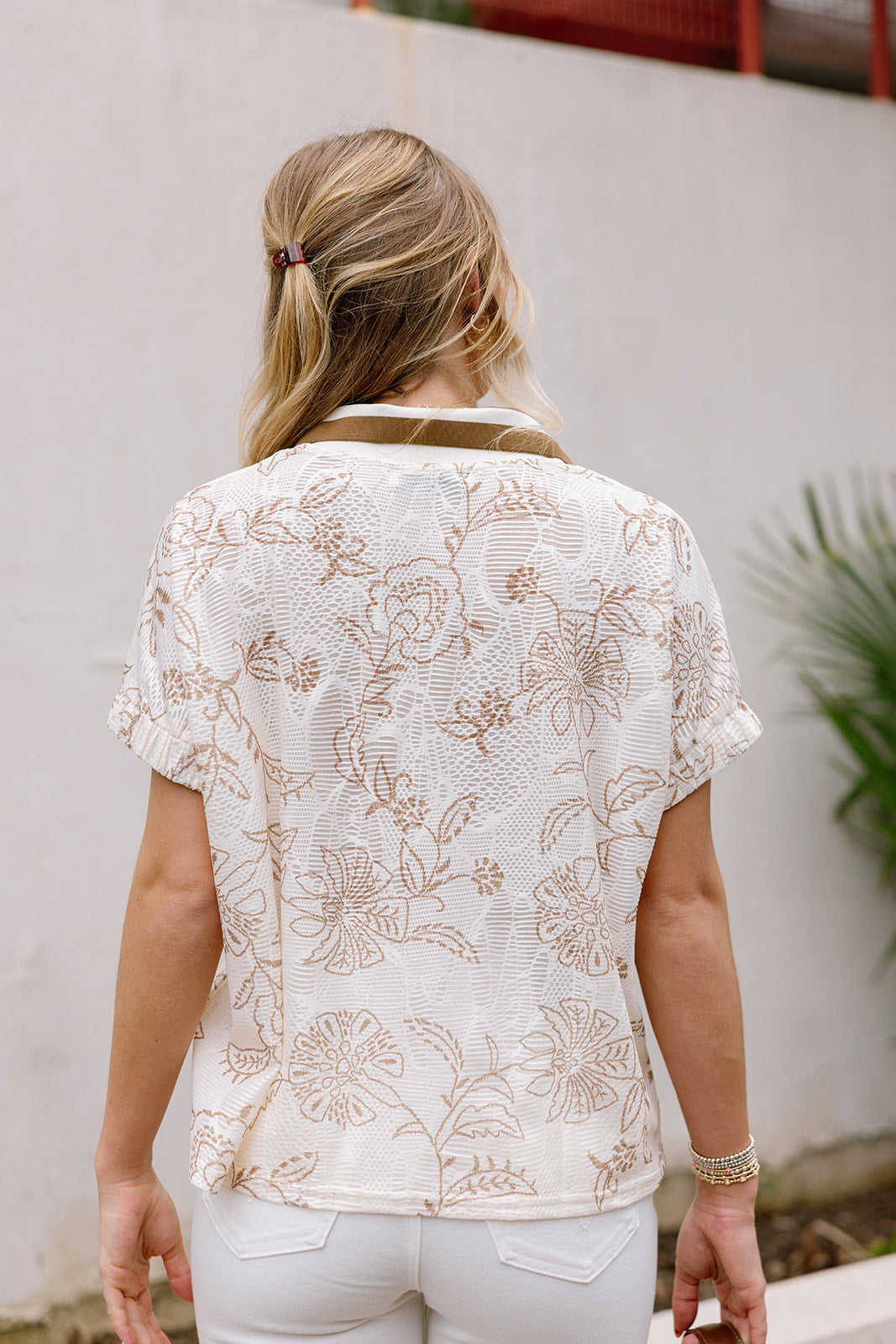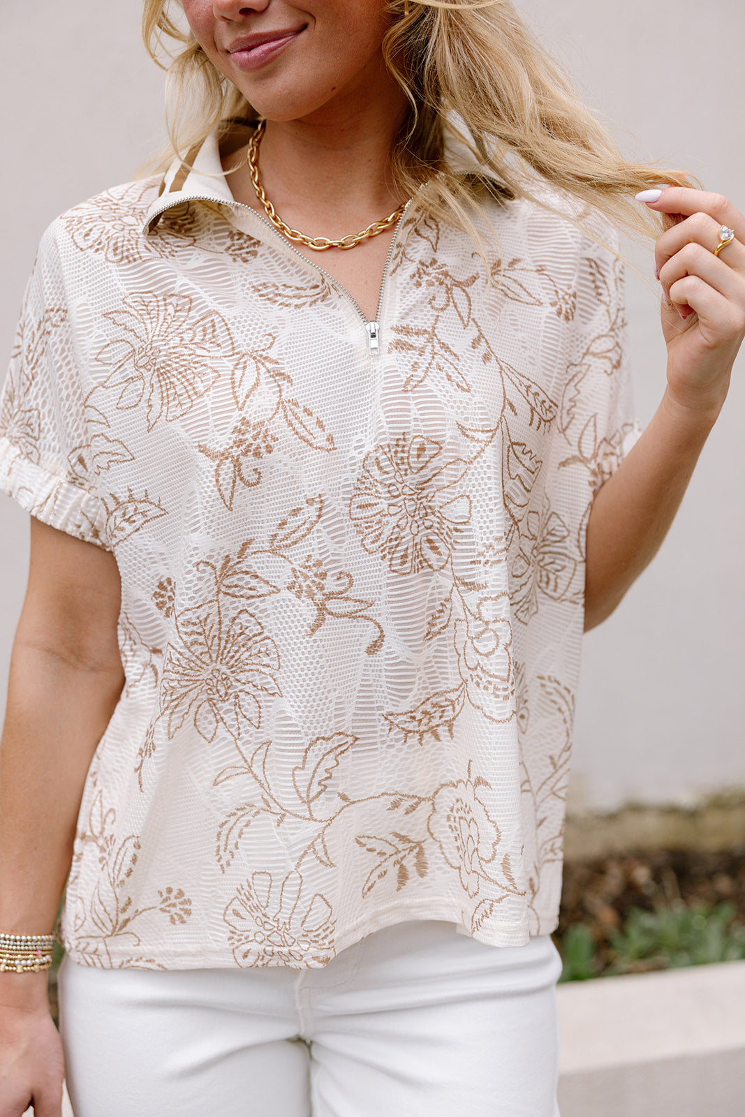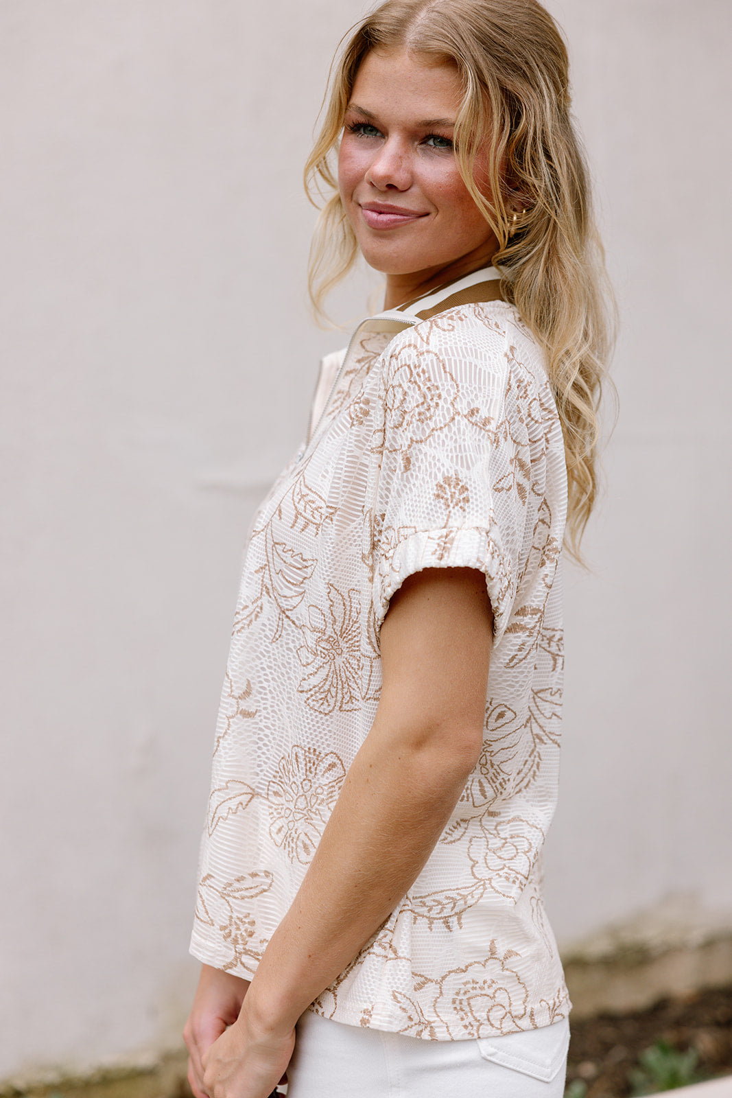 Mollie Cream & Taupe Floral Zip Top