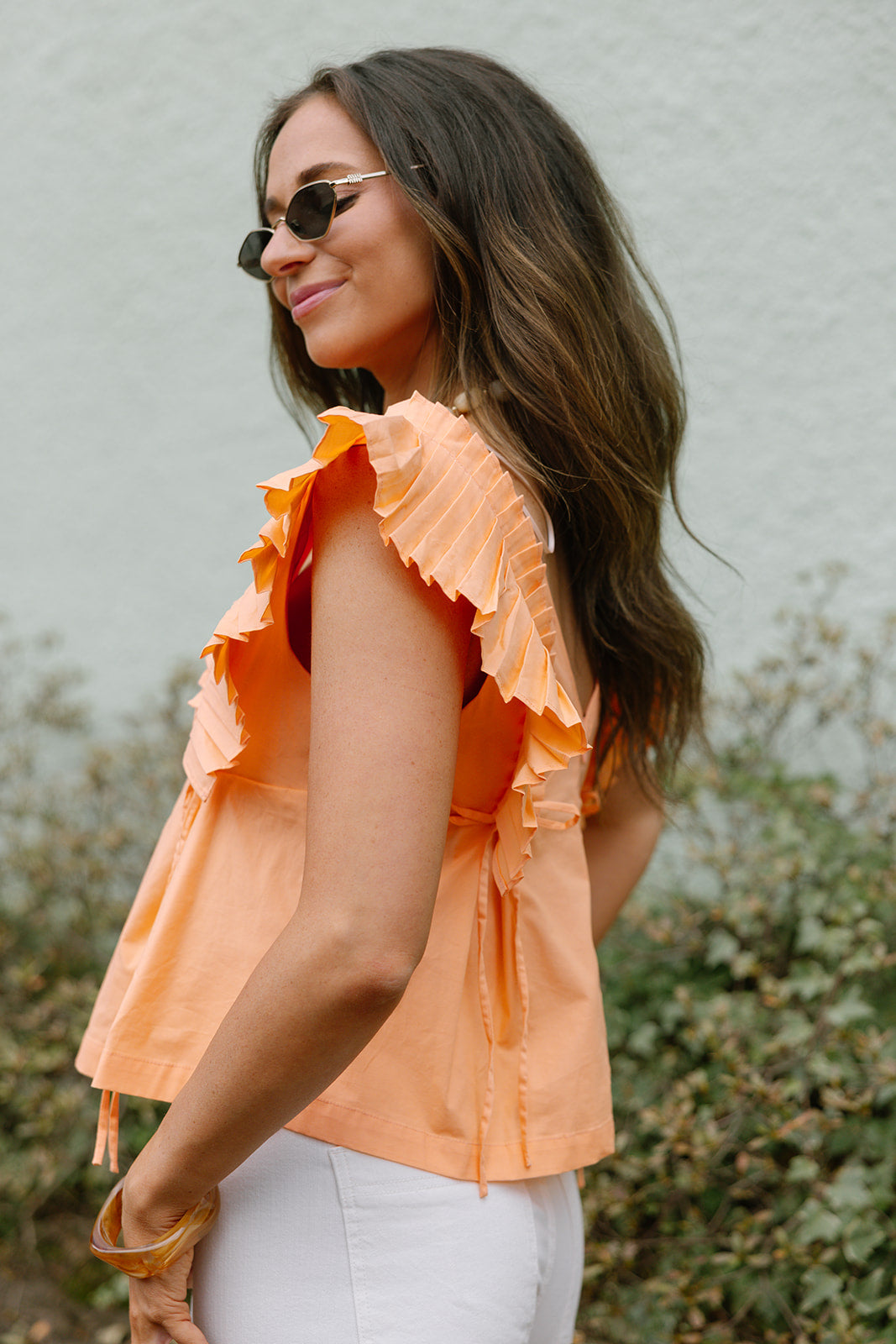 Palmer Orange Coral Pleated Ruffle Top