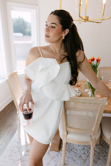 Mila White Ruffled Sweetheart Mini Dress