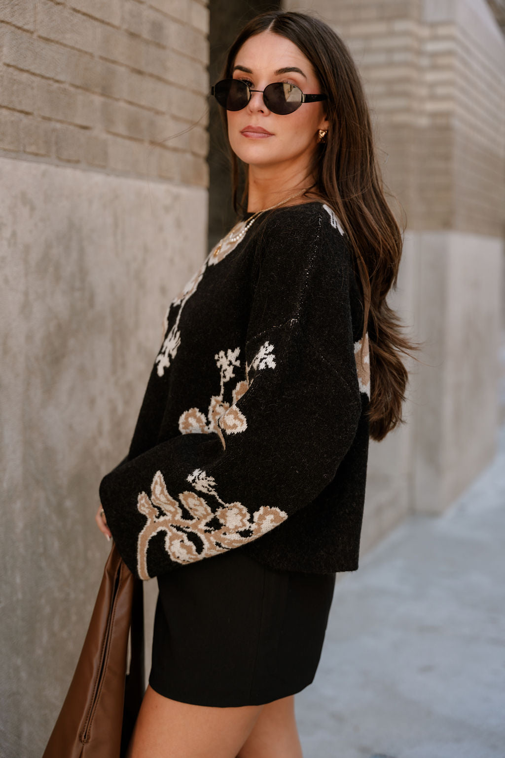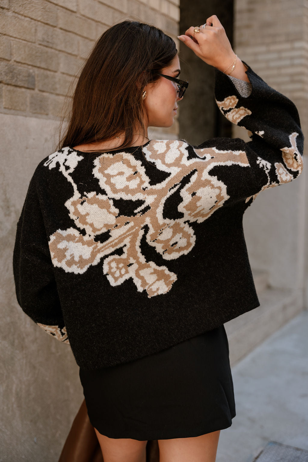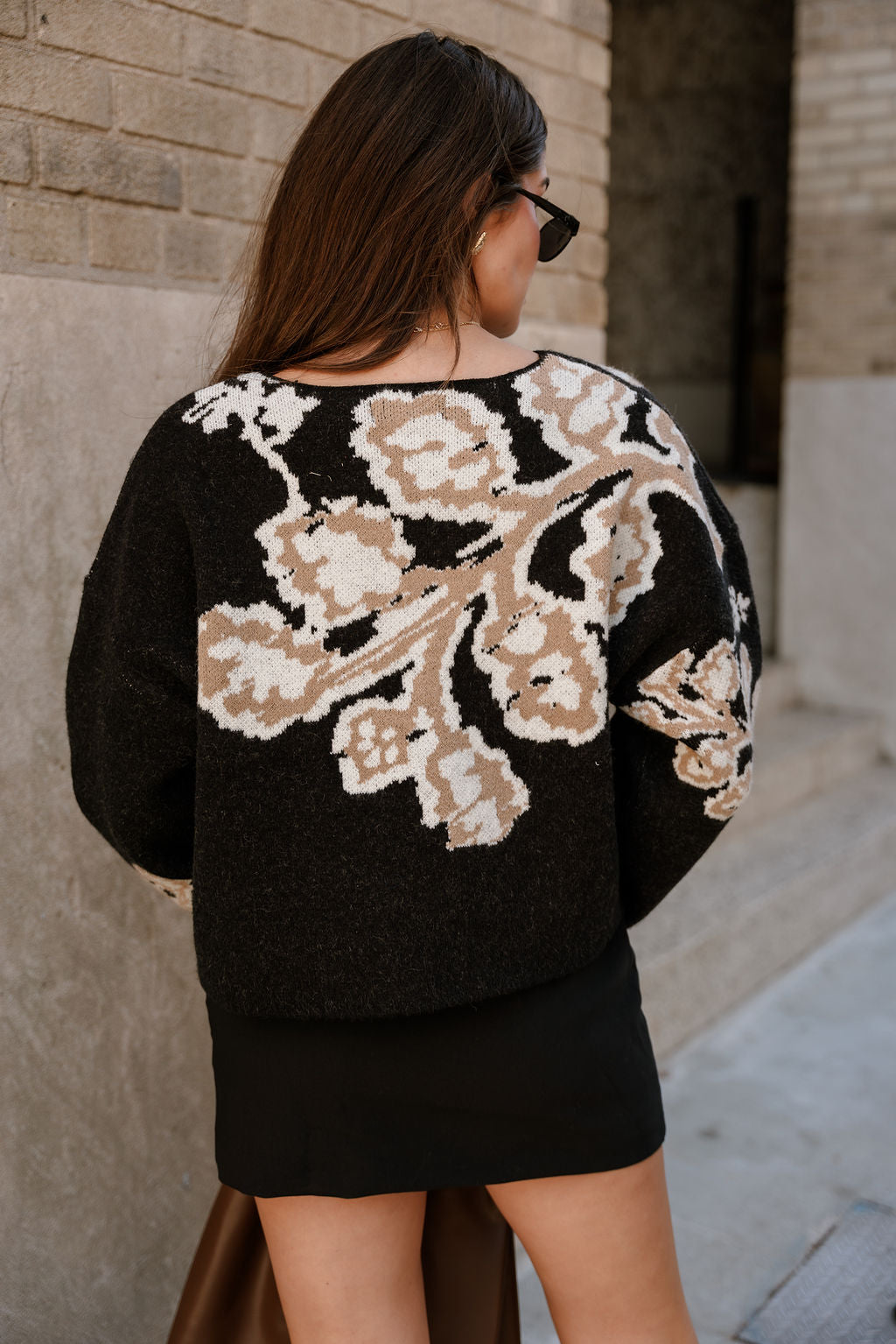 Pair it with high-waisted jeans and ankle boots for an easy daytime look, or dress it up with a midi skirt and statement earrings for a more polished ensemble. Versatile, comfortable, and eye-catching, the Adley Black & Taupe Floral Knit Sweater is the perfect piece to elevate your cool-weather style. It’s a standout staple you'll reach for again and again throughout the season.