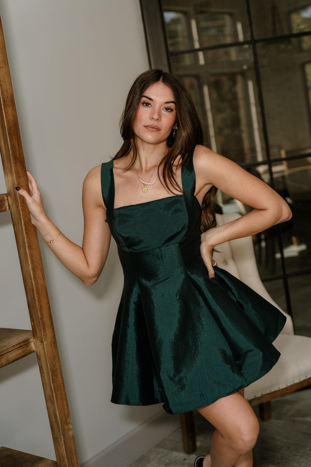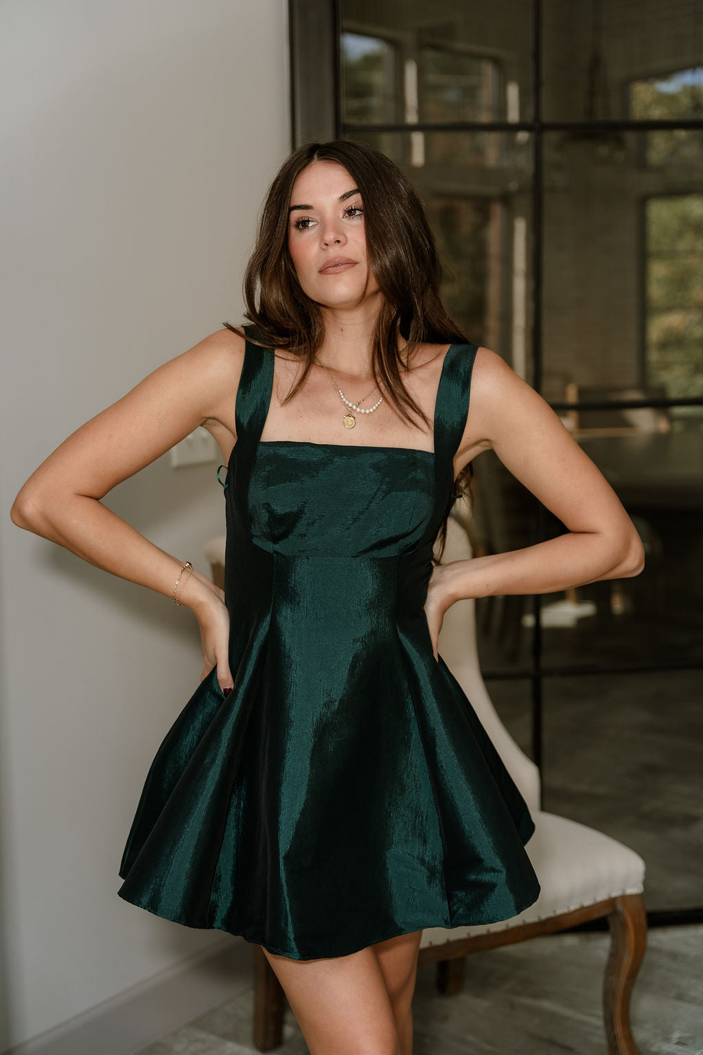 Make an effortlessly chic statement in the Alaia Hunter Green Sheen Flare Mini Dress. Designed in lustrous hunter green fabric with a subtle sheen, this dress exudes modern elegance with a playful twist. The flattering square neckline and adjustable straps offer a customized fit, while the flared hem adds movement and charm to the mini-length silhouette. Finished with a smooth green lining and a hidden back zipper for a sleek look, the Alaia dress is perfect for special occasions, date nights, or festive celebrations—delivering timeless style with a touch of shine.