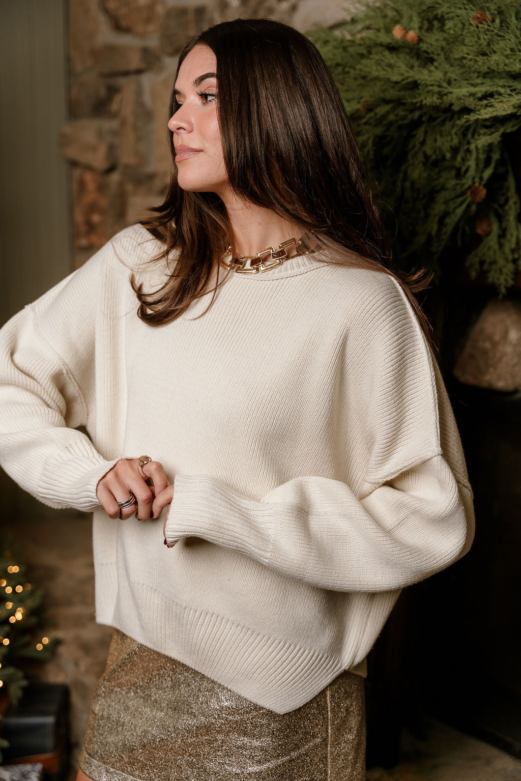 Designed with dropped shoulders and long sleeves, Alaina creates a relaxed, effortless silhouette that drapes naturally and feels comfortable all day. The round neckline keeps the style timeless and versatile, making it easy to dress up with tailored pants or keep casual with denim and boots.