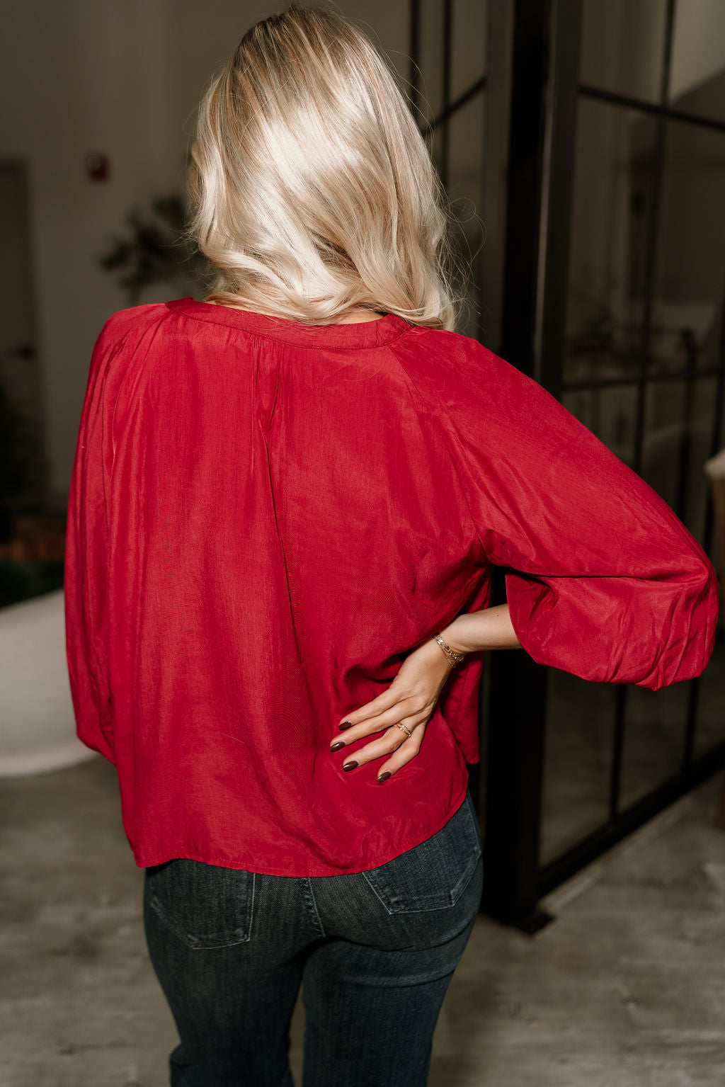 Romantic and effortlessly refined, the Alanna Deep Red Long Sleeve Top brings a touch of elegance to any outfit. Crafted from lightweight deep red fabric, this top offers a soft, breathable feel with beautiful drape—perfect for both casual days and dressed-up occasions. The rich, bold hue adds warmth and sophistication, making it an eye-catching addition to your wardrobe.