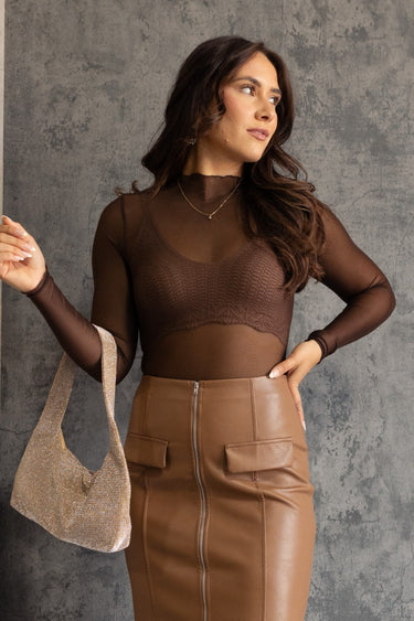 Alessia Brown Mesh Long Sleeve Bodysuit