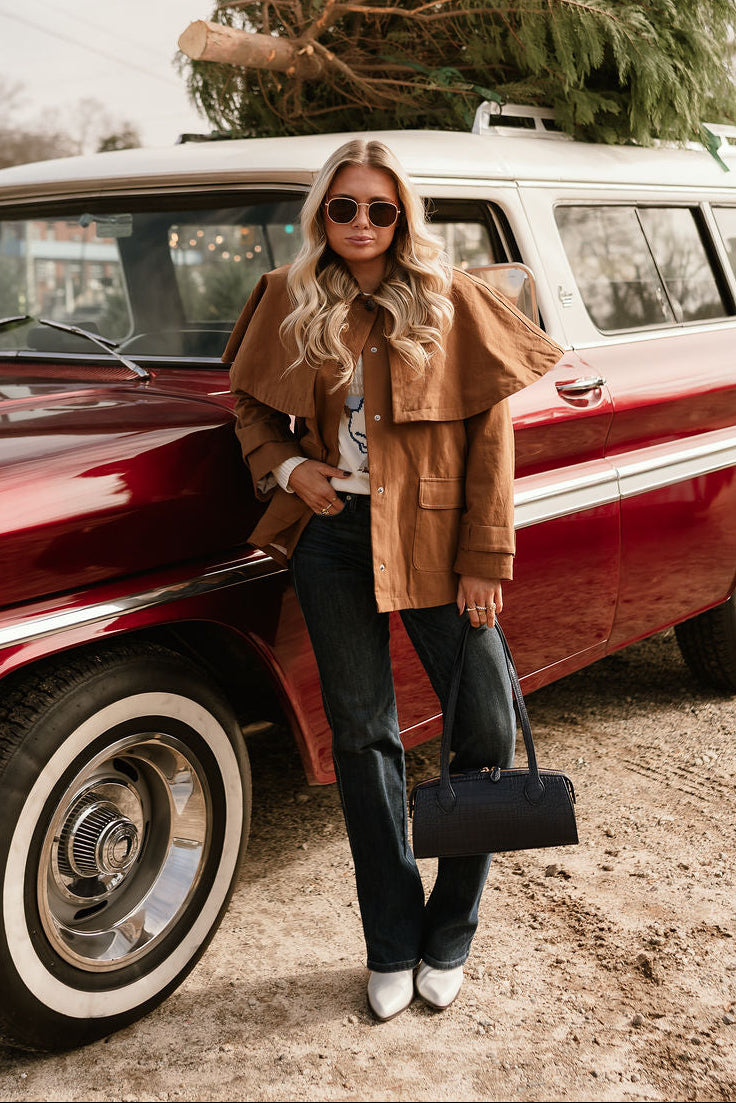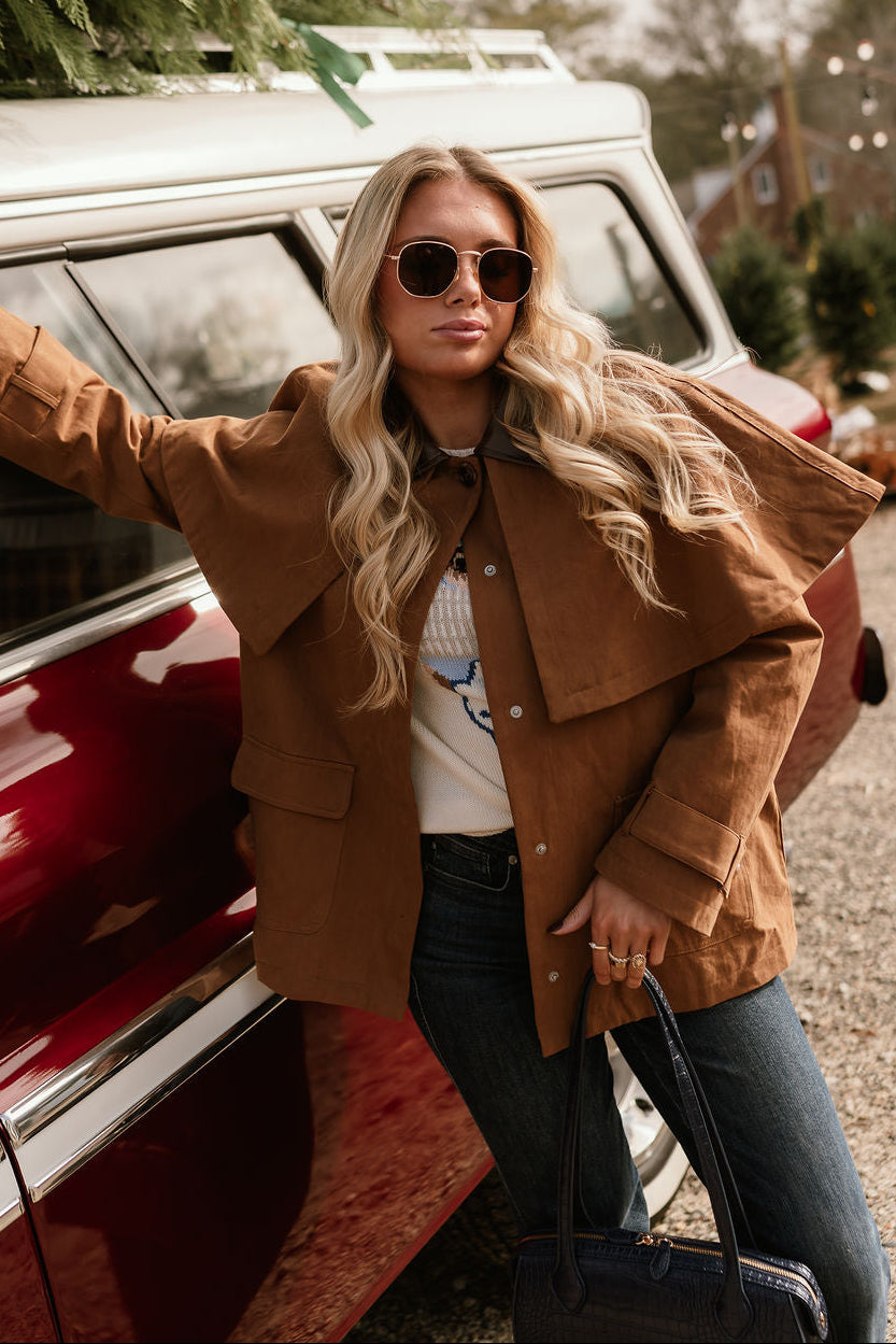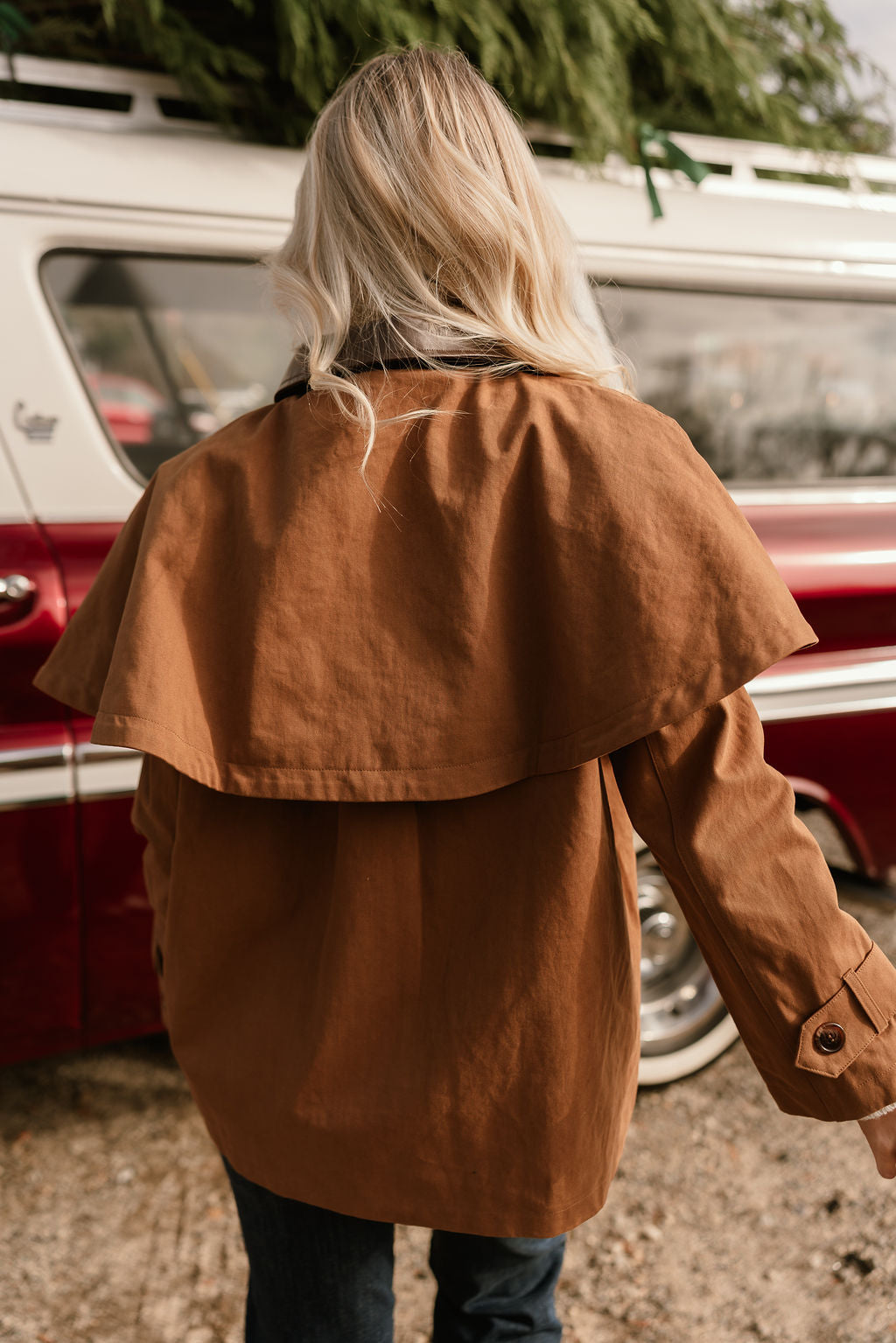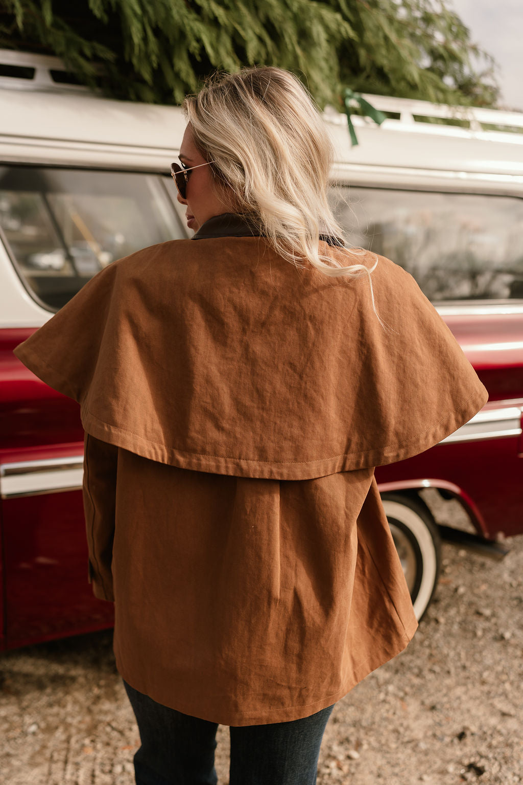 Elevate your layering game with the Alice Brown Poncho Jacket, a stylish fusion of classic design and modern detailing. Crafted from soft light brown camel fabric, this jacket offers cozy warmth and a relaxed, flattering silhouette perfect for transitional seasons. The standout dark brown faux leather collar adds a touch of sophistication, while overlay shoulder detailing provides a contemporary, fashion-forward twist.
