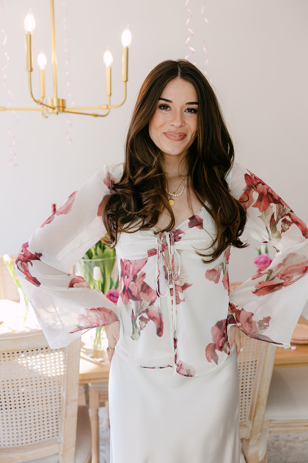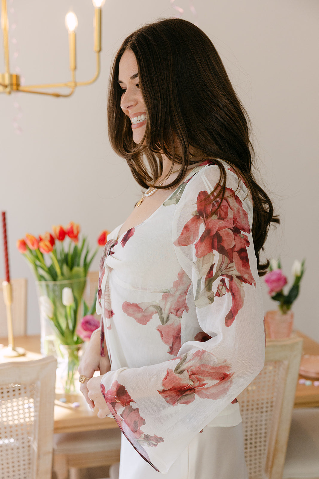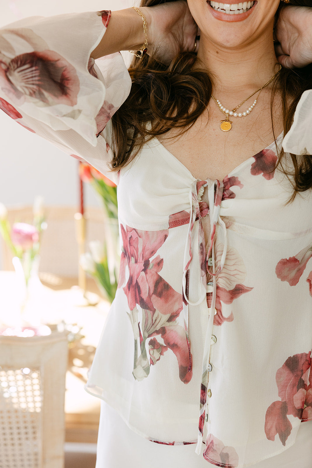 Effortlessly versatile, the Alicia top pairs beautifully with denim for a relaxed daytime look or tailored trousers or skirts for a clean evening ensemble. Whether styled for brunch, date nights, or seasonal gatherings. This floral top delivers a perfect balance of romance, sophistication, and modern femininity.