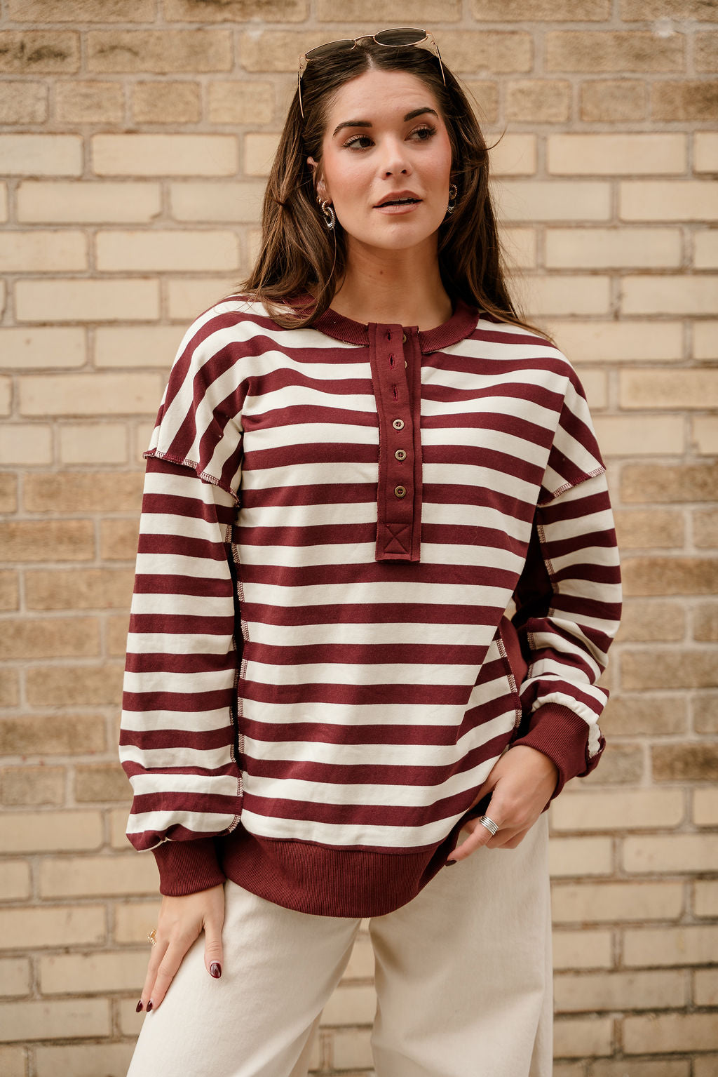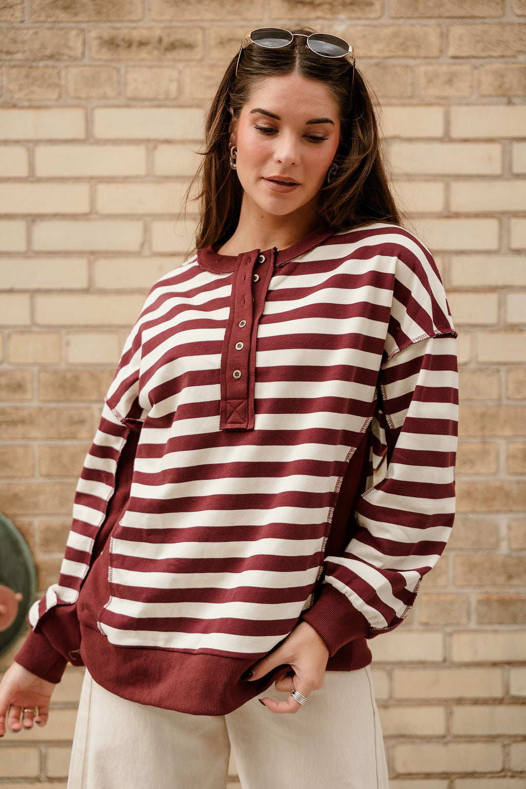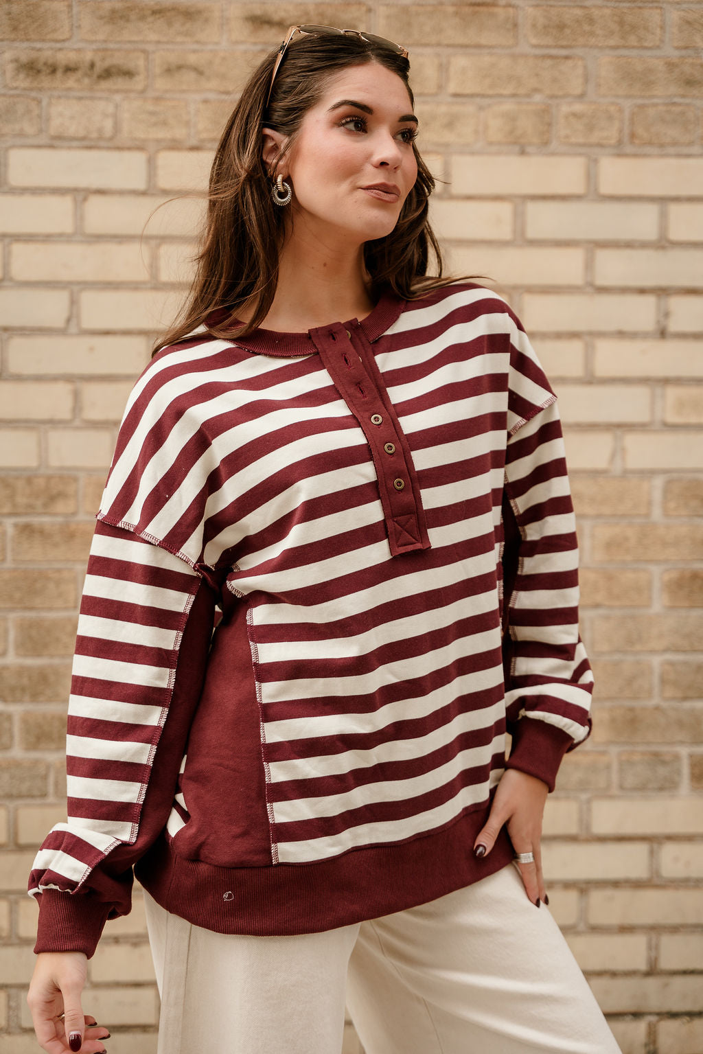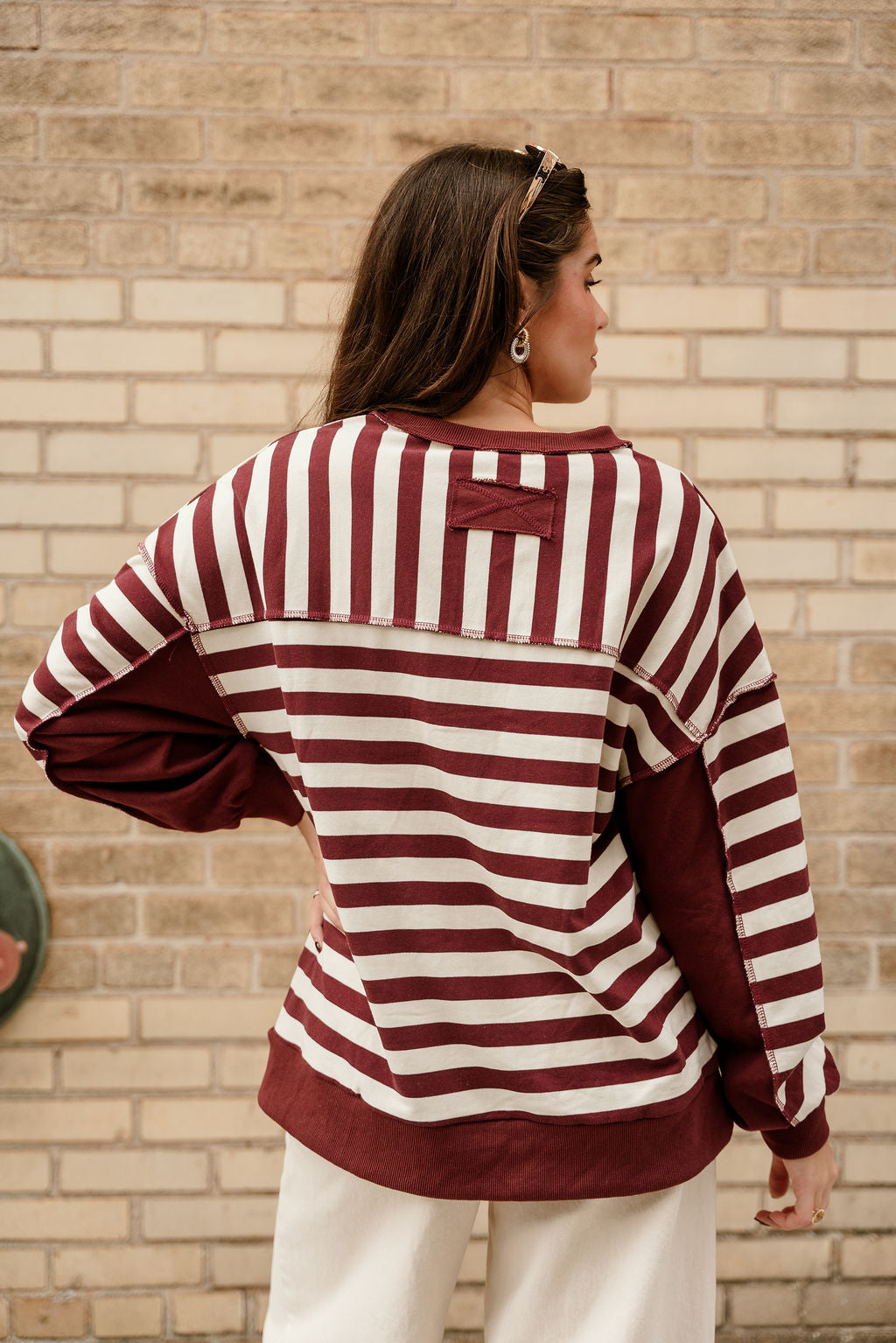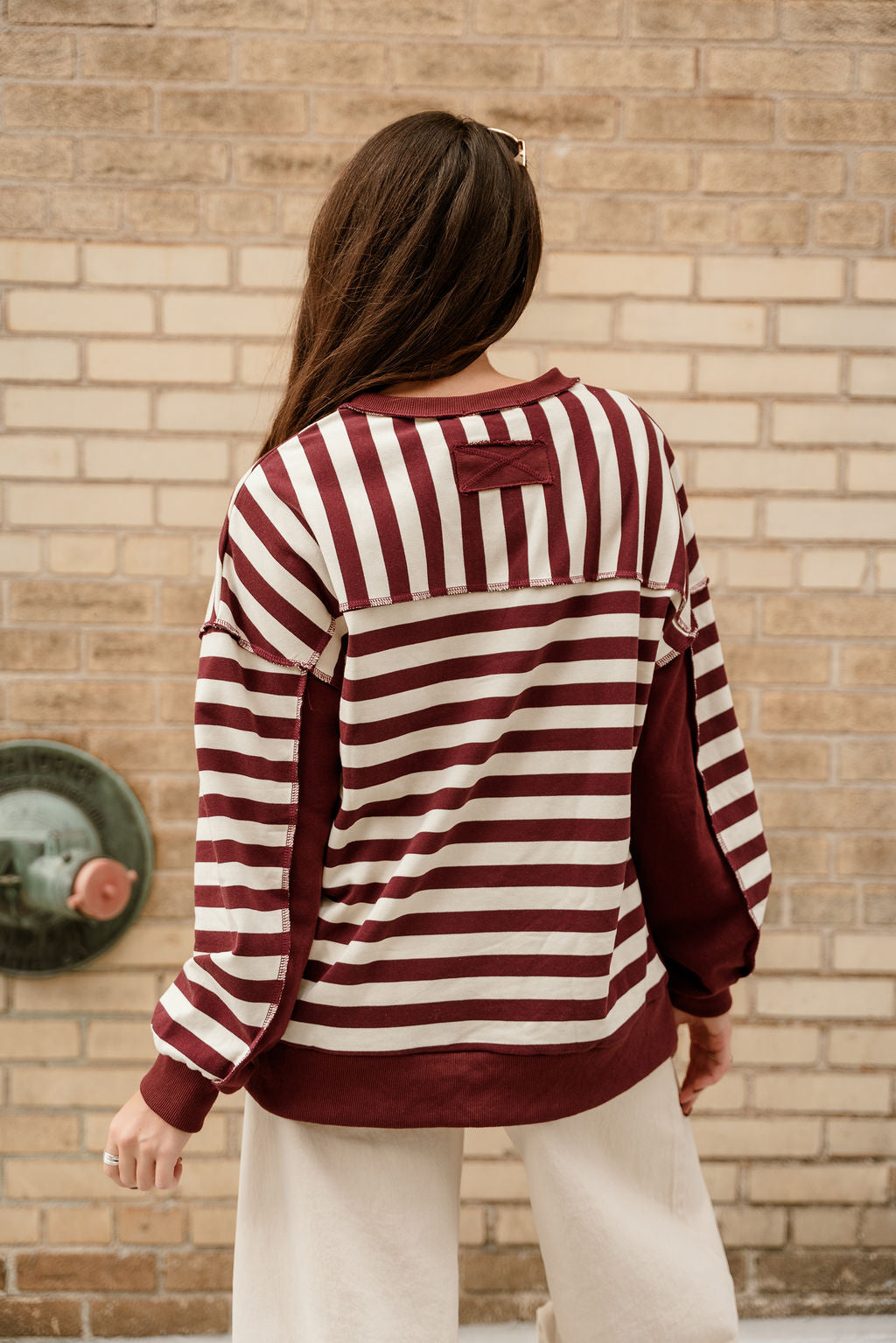 Allison Burgundy & Cream Stripe Pullover