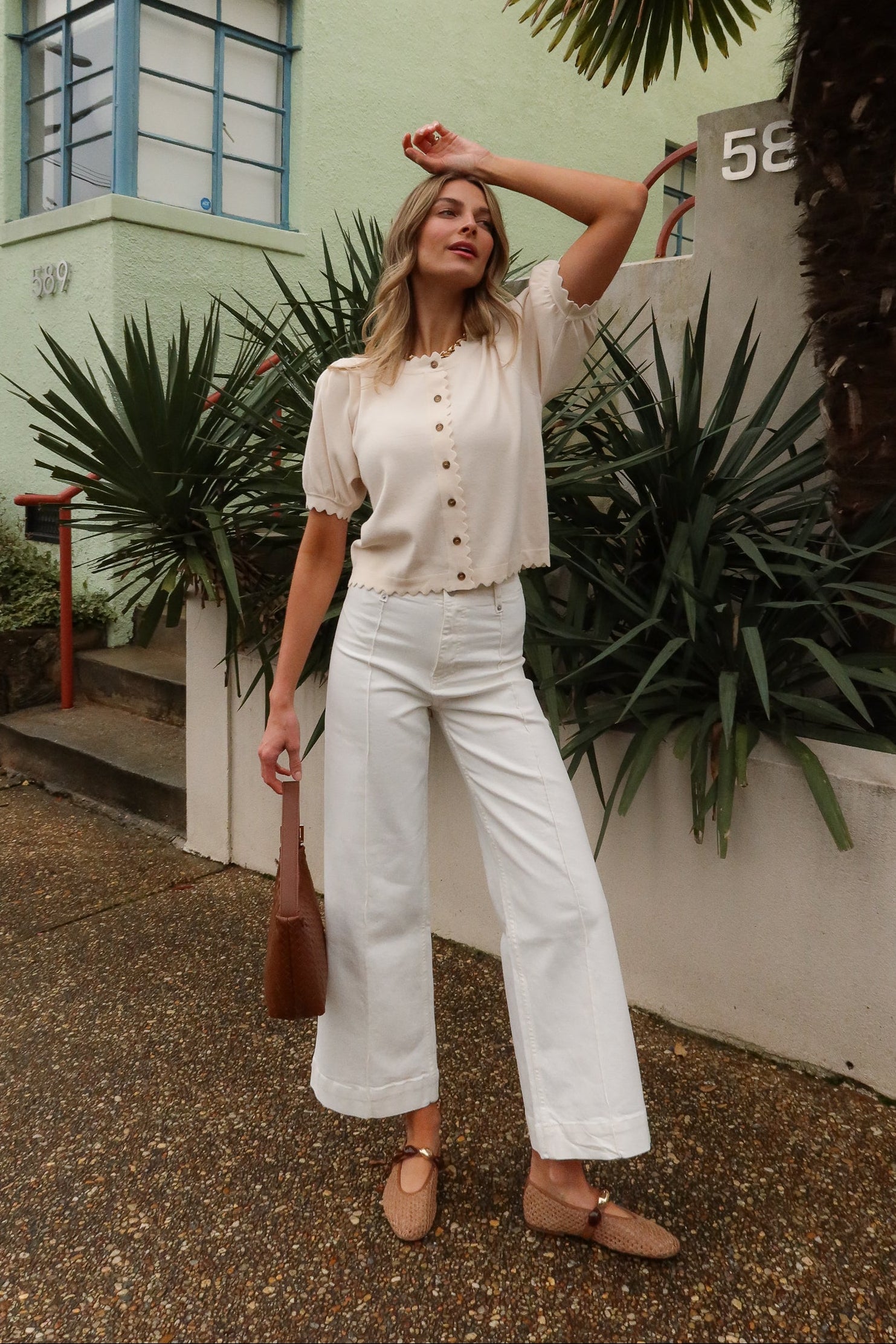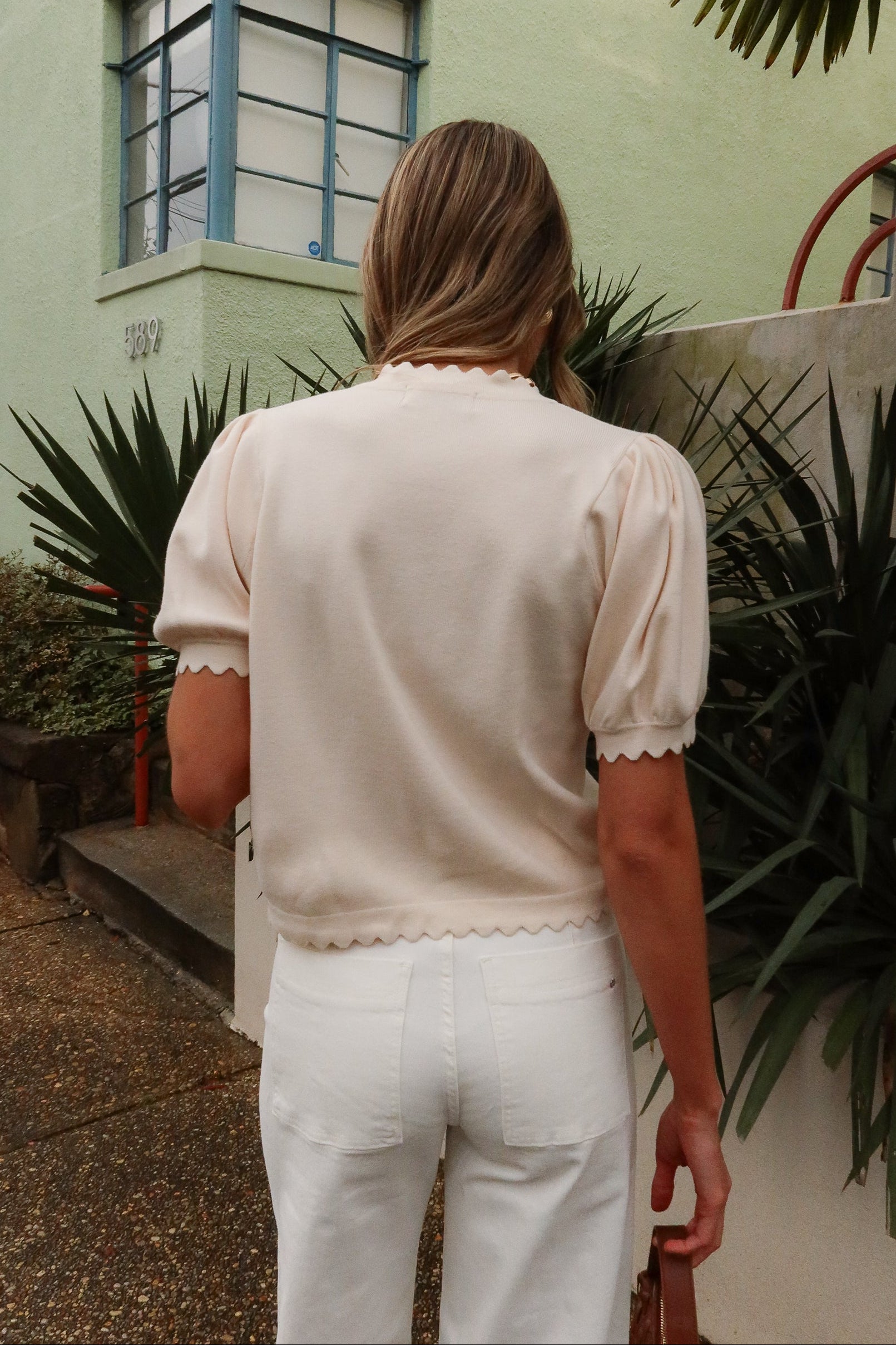 Amelia Cream Scalloped Short Sleeve Cardigan