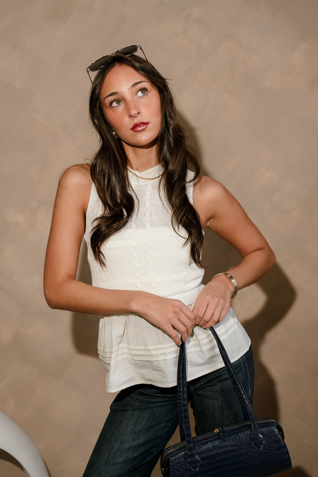 The Anya Cream Peplum Tank Top is a flattering, feminine piece designed to elevate your everyday basics. Featuring a soft cream knit upper, this tank offers a comfortable fit through the bodice while the peplum flare hem adds movement and a touch of charm. The round neckline keeps the look clean and versatile.