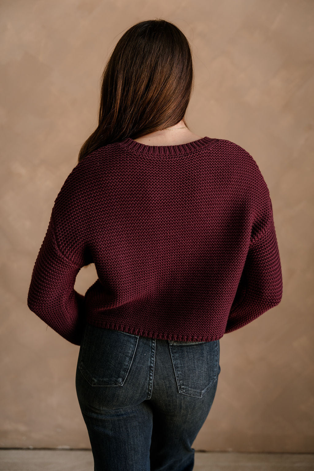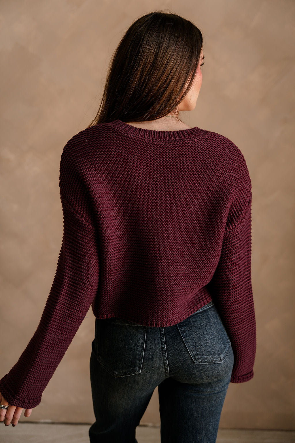The Ashton Purple Knit Cropped Sweater brings a fun, fresh pop of color to your cool-weather lineup. Made with purple ribbed cable knit fabric, this cozy piece features a round neckline, dropped shoulders, and long sleeves for an easy, relaxed silhouette. The slight cropped waist adds a modern touch that pairs perfectly with high-waisted jeans, trousers, or skirts.