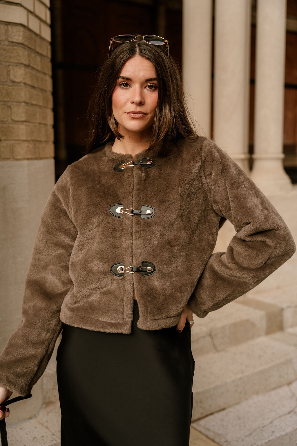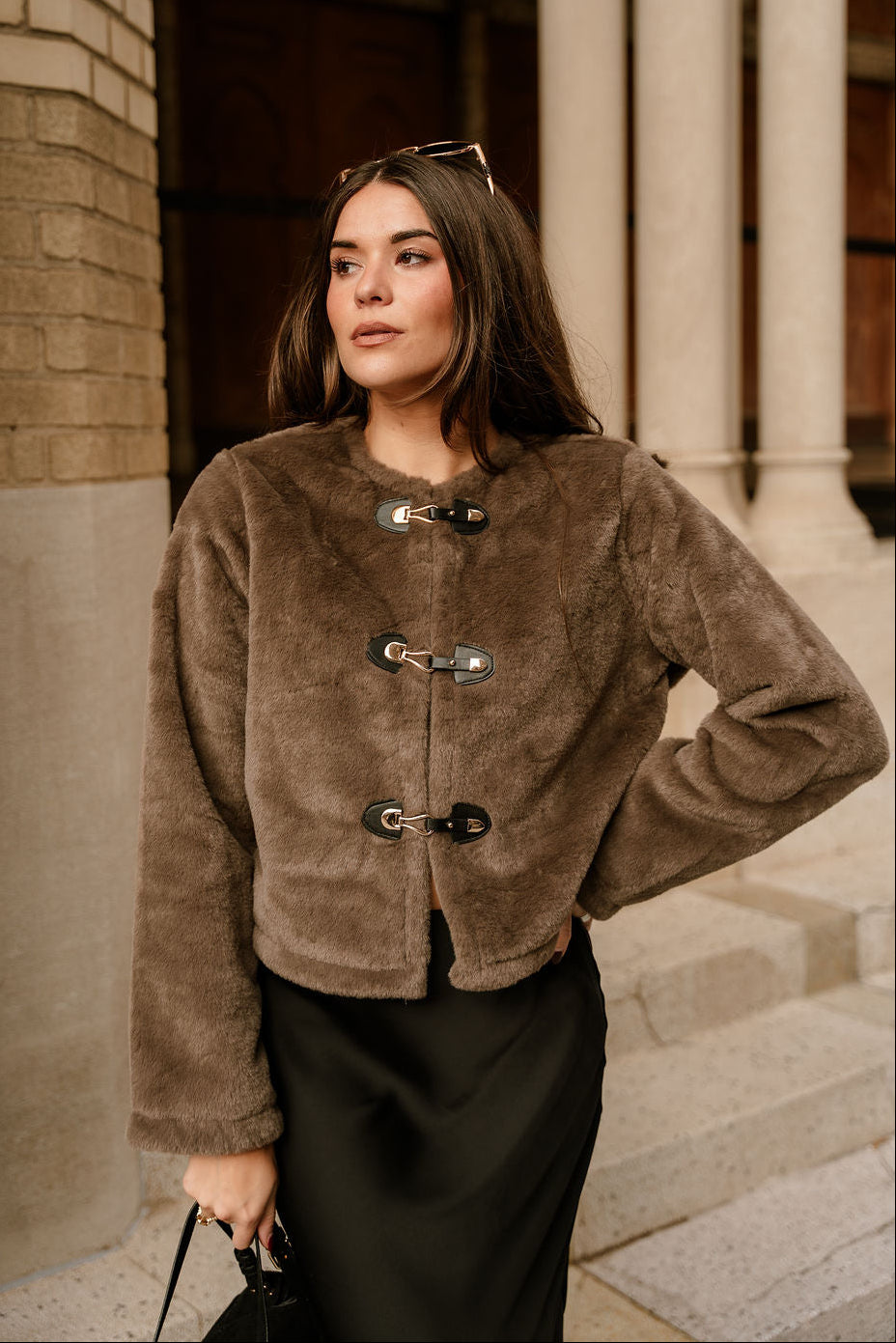 Wrap yourself in luxury with the Aspen Taupe Faux Fur Jacket, a statement-making layer that blends elevated texture with timeless style. Crafted from plush taupe faux fur fabric, this jacket offers an ultra-soft feel and a beautifully rich look that instantly enhances any outfit.