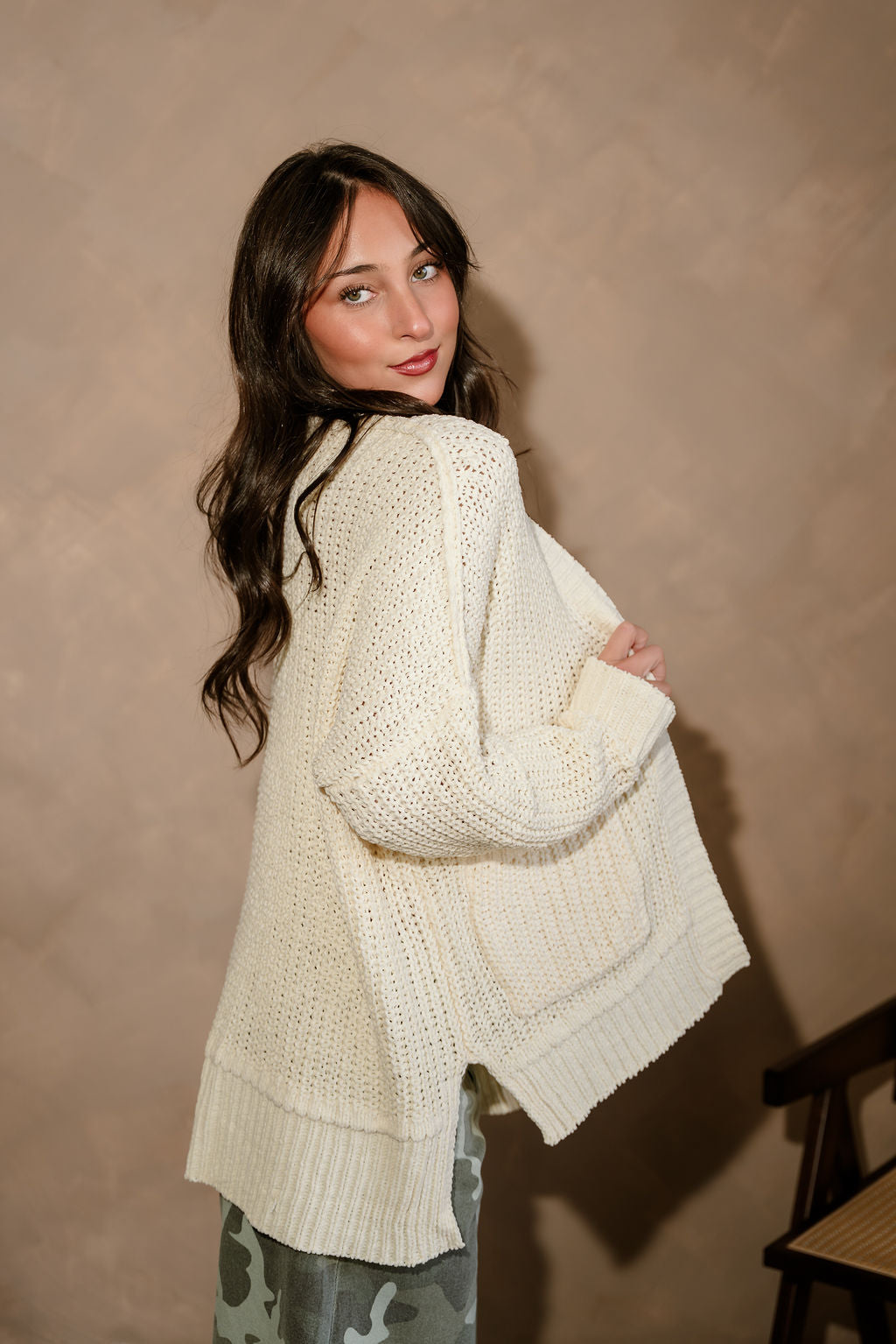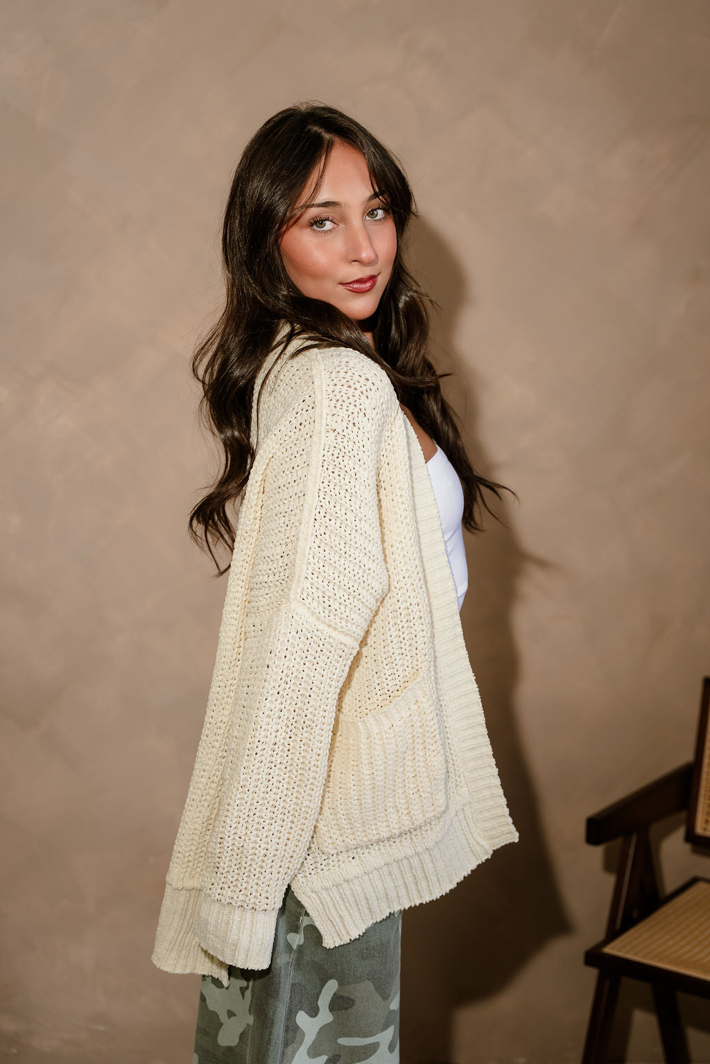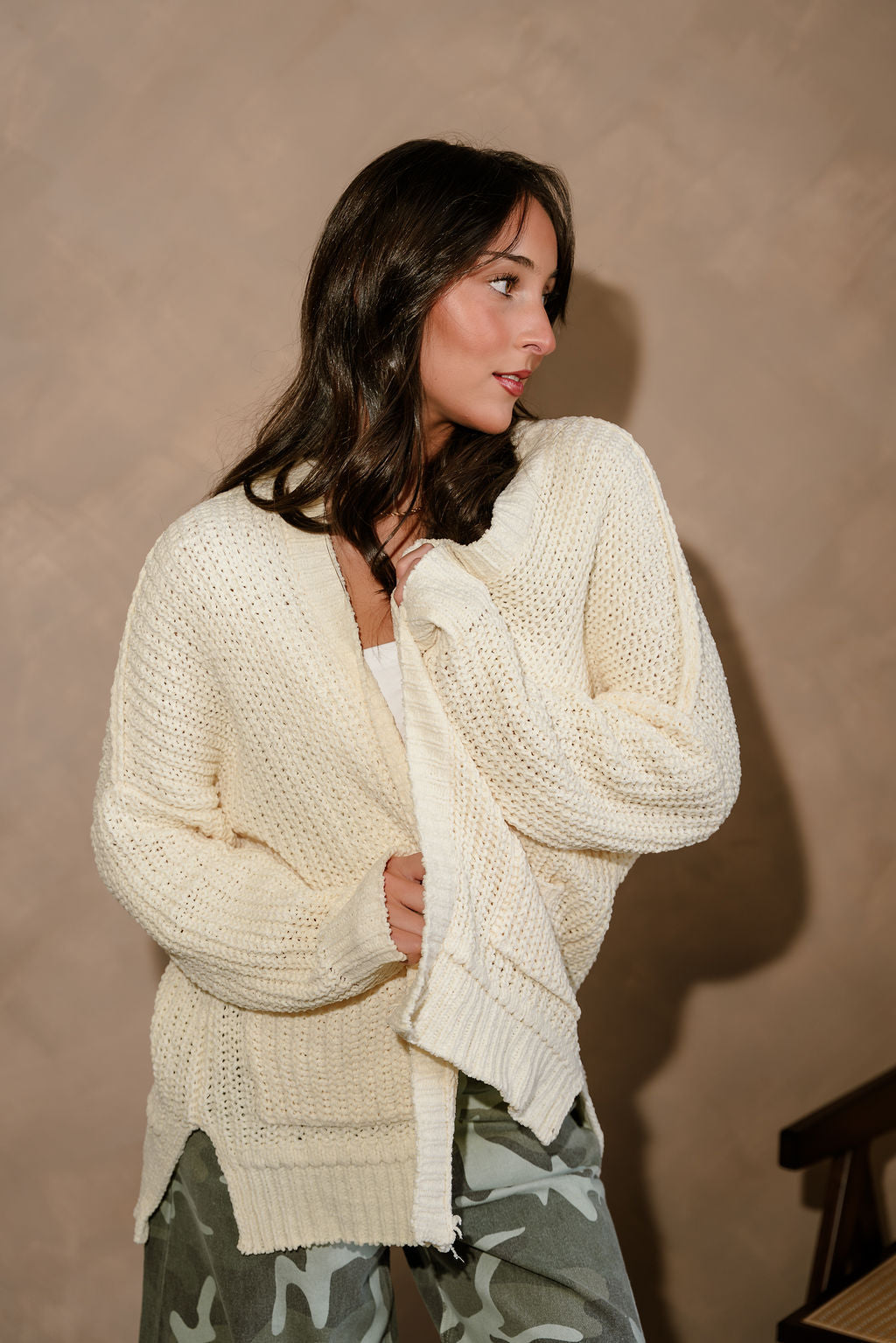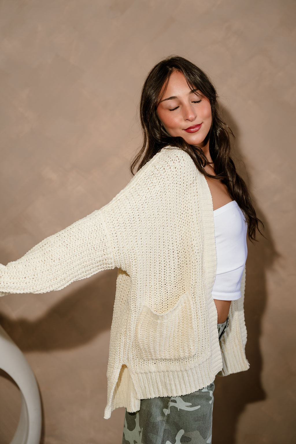 The Ayla Pale Yellow Knit Cardigan is a cozy and cheerful layering piece for any wardrobe. Made from soft pale yellow knit fabric, this cardigan features a relaxed front-opening design with convenient front pockets for everyday functionality. Dropped shoulders and long sleeves create a comfortable, laid-back fit, while the lightweight knit makes it perfect for layering over tops or dresses. Effortlessly versatile, the Ayla cardigan adds a pop of warmth and style to any outfit.