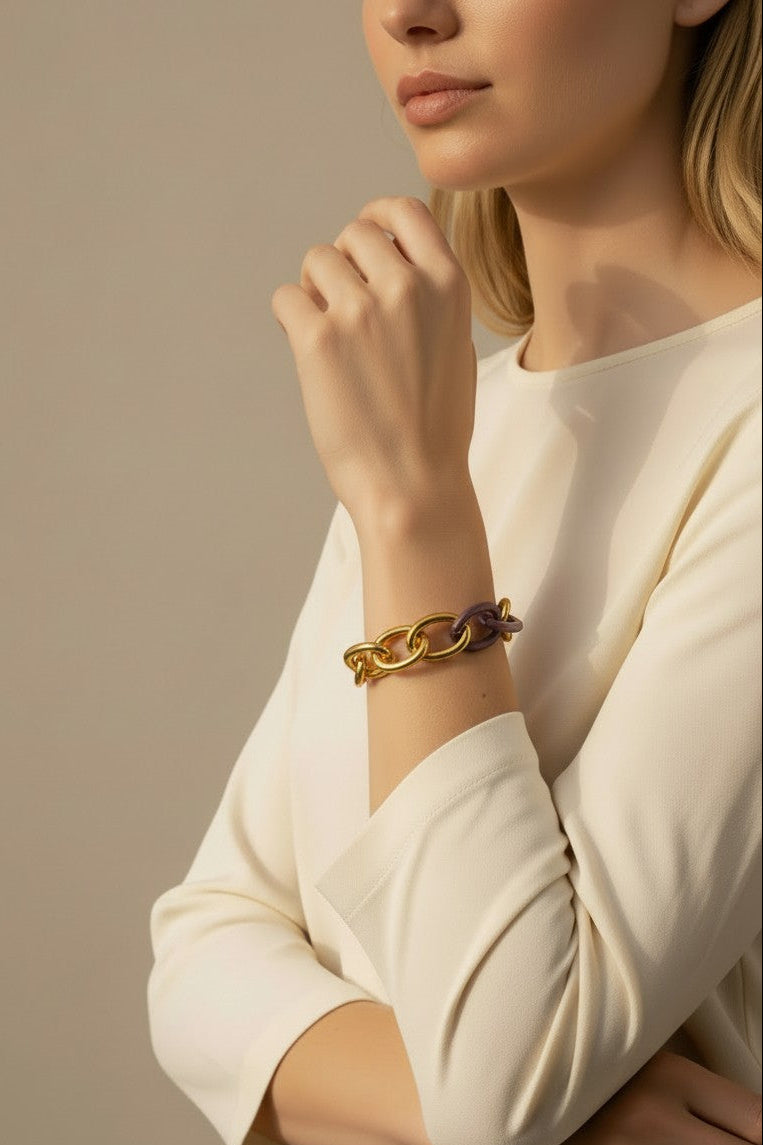 Versatile enough for day or night, the Blaire Mauve & Gold Brushed Chain Bracelet is a timeless accessory that blends elegance, color, and modern charm.