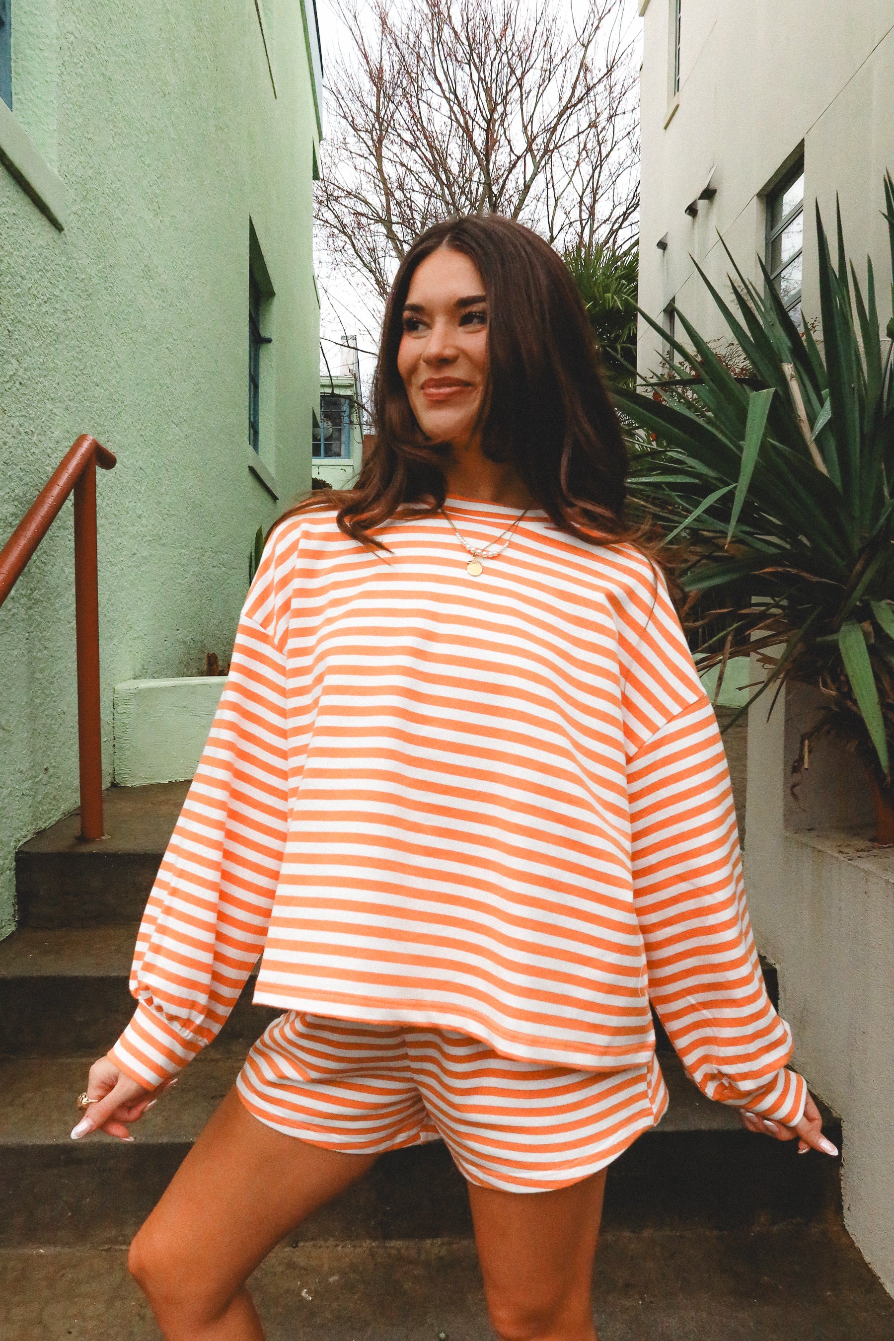 Bright and playful, the Brooklyn Orange & White Striped Top adds a bold pop of color to your everyday wardrobe. Crafted from soft orange and white knit fabric, this long sleeve top features a classic stripe print and a timeless round neckline for an easy, flattering fit. The lightweight knit makes it comfortable for layering or wearing on its own through transitional seasons.