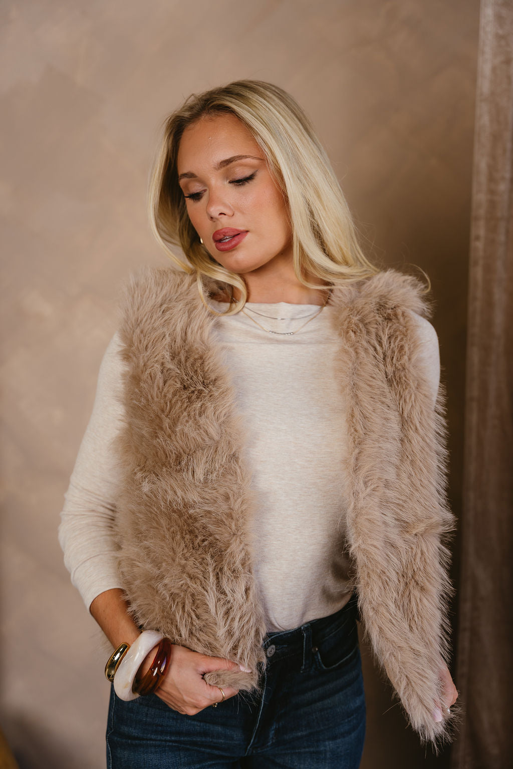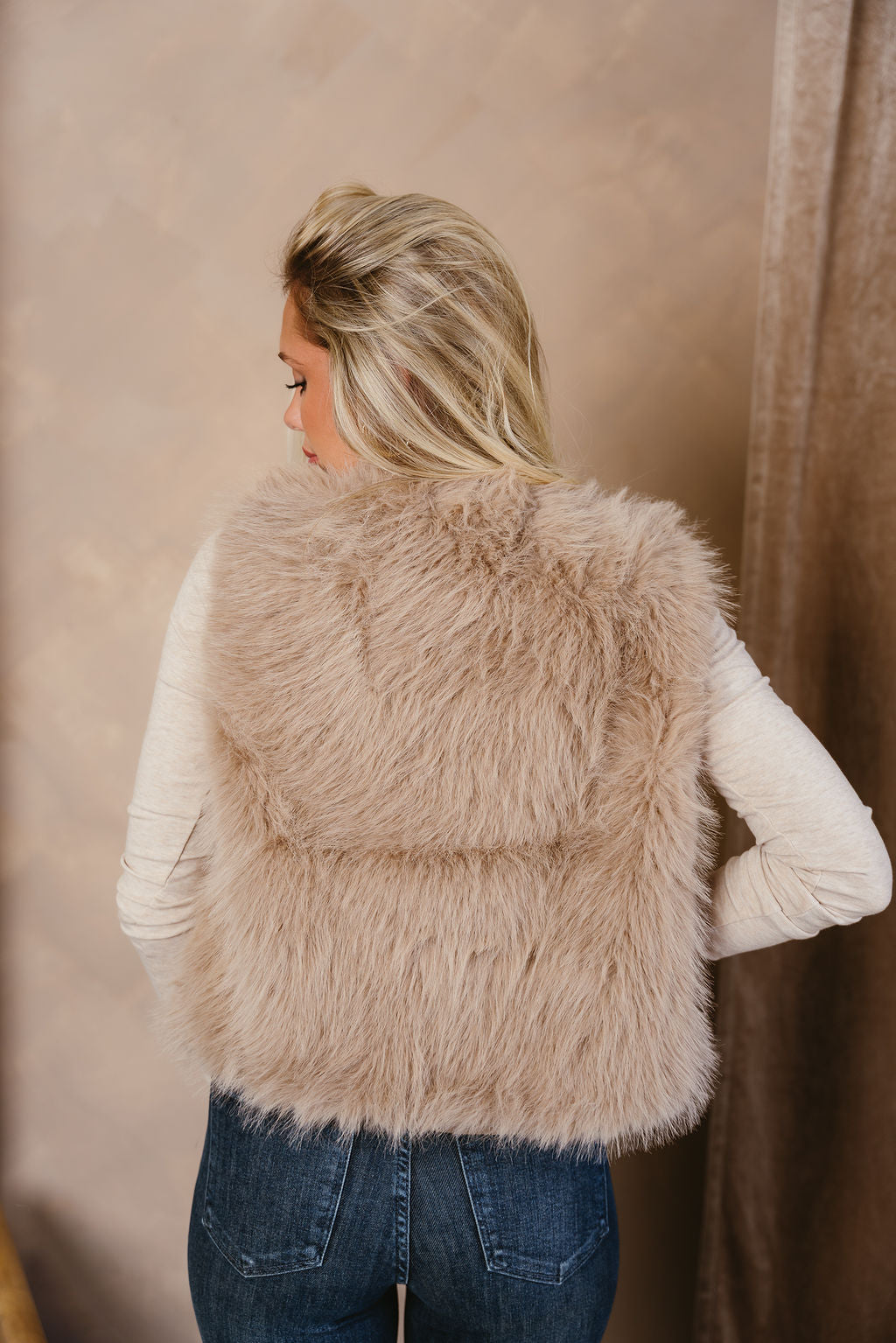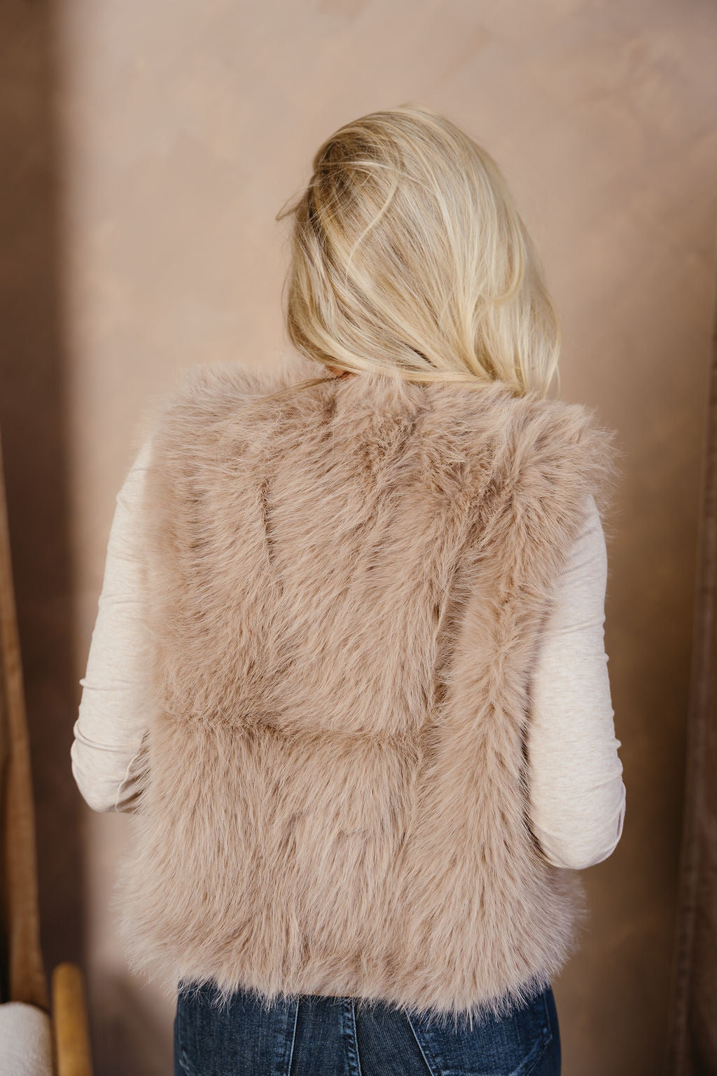 Cadie Taupe Faux Fur Vest