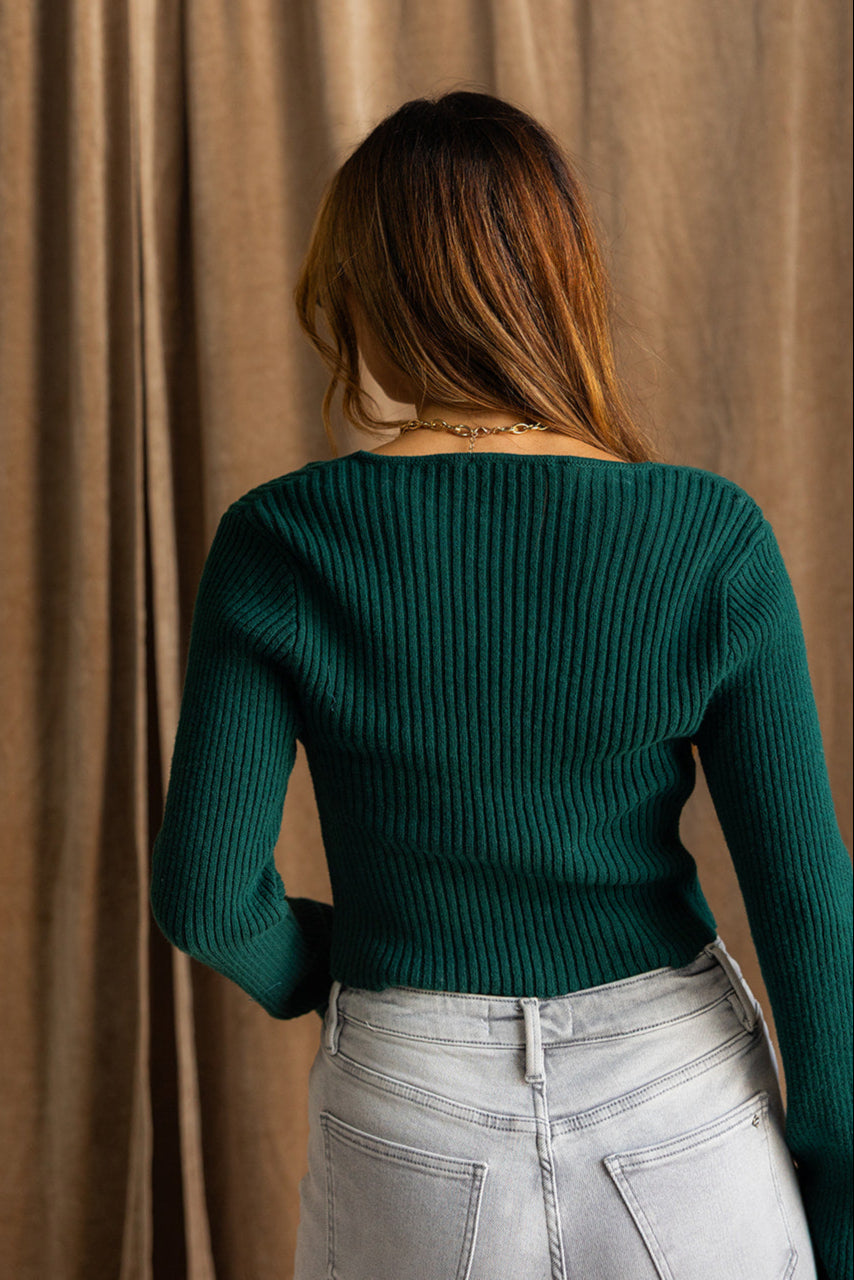 The Candice Dark Green Front Tie Cardigan is the perfect layering piece for effortless style. Made from soft ribbed knit fabric in a rich dark green hue, it features a front opening with a delicate tie closure, a flattering scoop neckline, and long sleeves. Chic yet versatile, it’s ideal for pairing with everything from casual denim to sleek skirts.