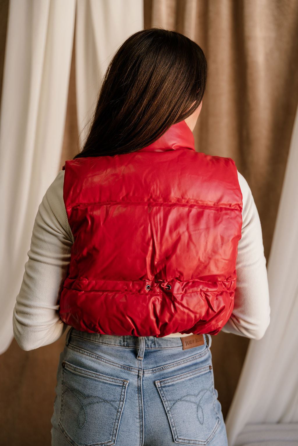 Chantel Red Faux-Leather Puffer Vest