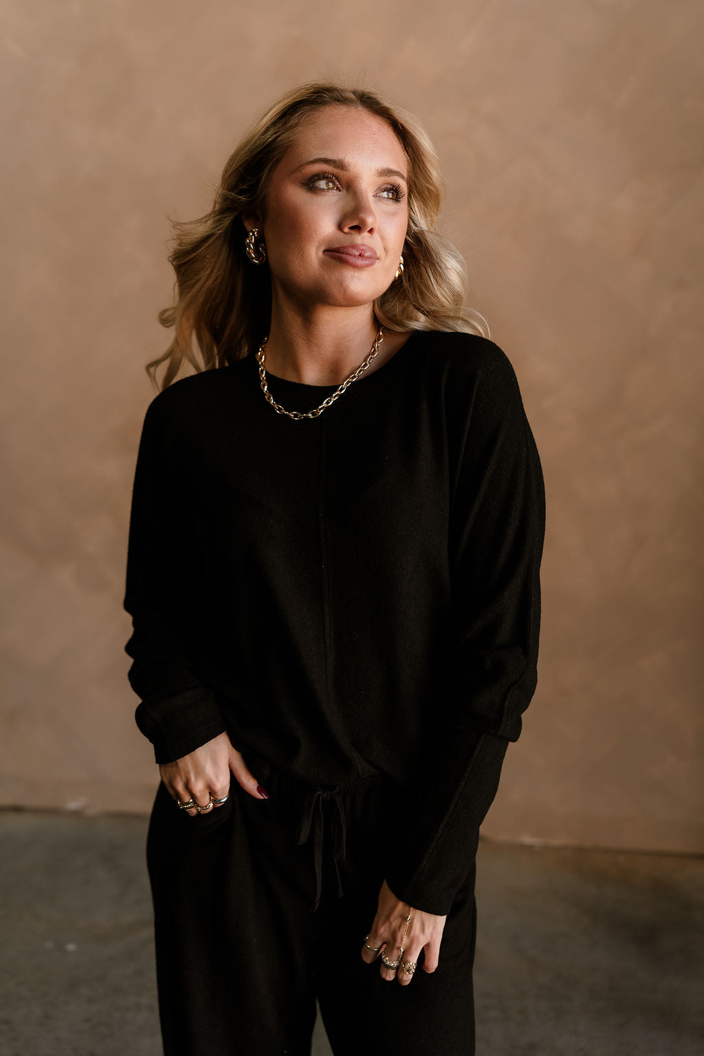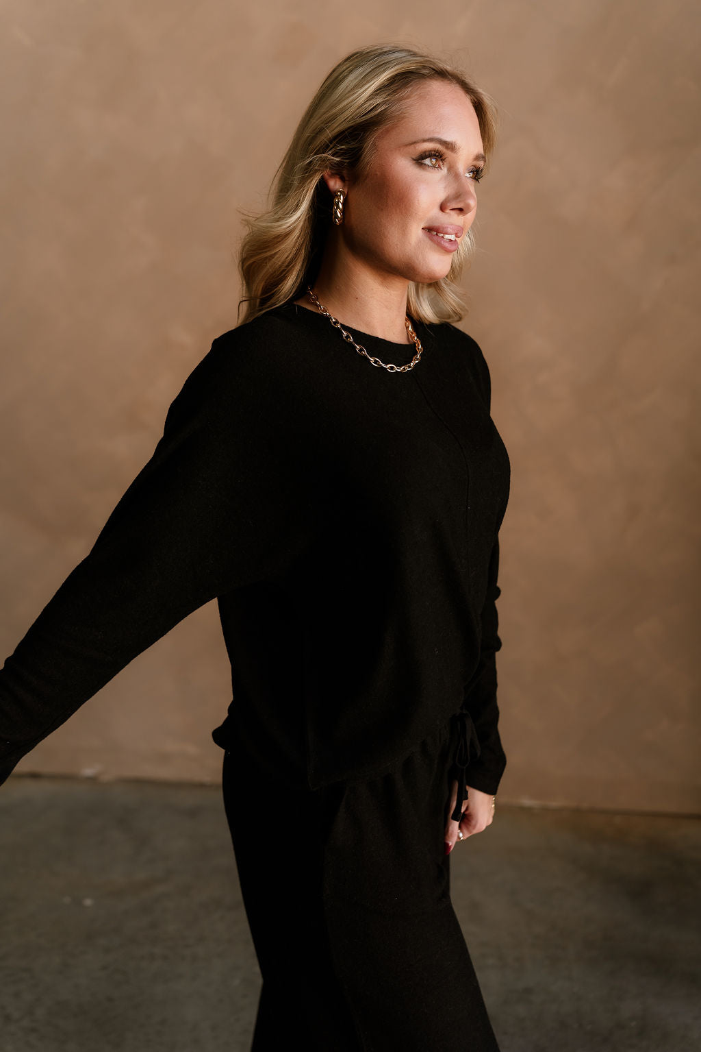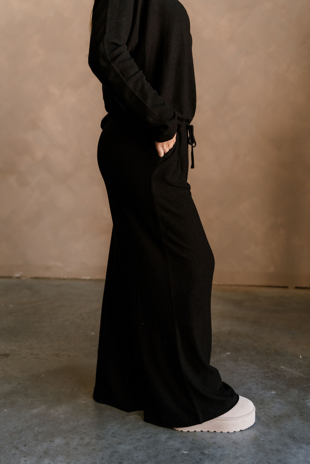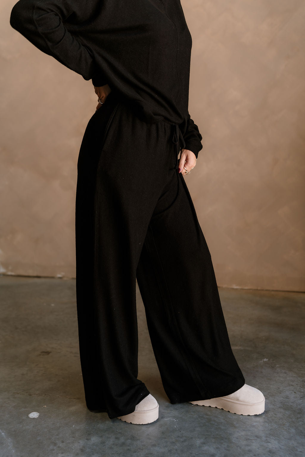 The Charlotte Black Loungewear Set is the perfect combination of comfort and effortless style. Made from soft, lightweight black cotton fabric, this set features a long sleeve top with a classic round neckline and wide-leg pants with a drawstring waist for a relaxed, cozy fit. Its versatile design makes it ideal for lounging at home, running errands, or enjoying casual outings.