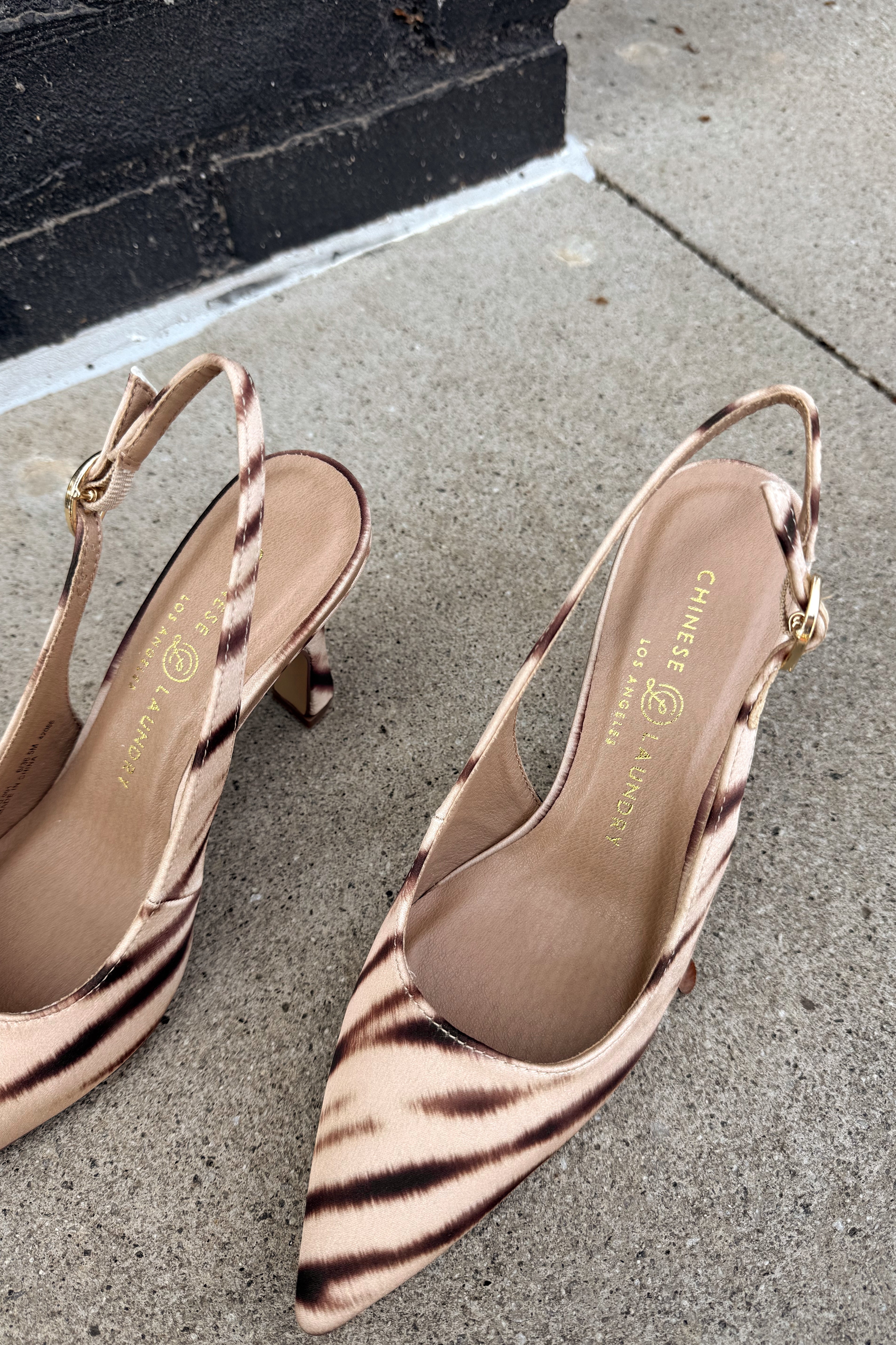 Make a fierce and stylish statement with the Chinese Laundry Riri Camel Multi Heel. Featuring a striking brown and cream tiger print, this heel brings bold sophistication to any look. The sleek pointed toe adds a modern, elongated silhouette, while the adjustable ankle strap ensures a secure and customizable fit.