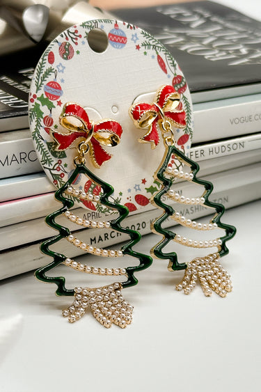 Christmas Tree & Pearls Multi Dangle Earring