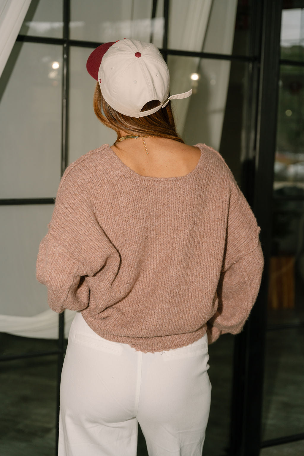 Effortlessly cozy with elevated details, the Clara Mocha Brown Knit Sweater is a versatile staple for cooler days. Crafted from soft mocha brown knit fabric, this sweater features a flattering V neckline and long balloon sleeves for a relaxed yet feminine silhouette. Ribbed wrists add subtle structure, while exposed seam details lend a modern, lived-in touch.