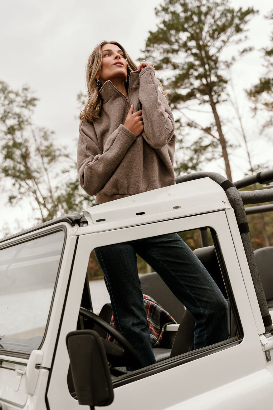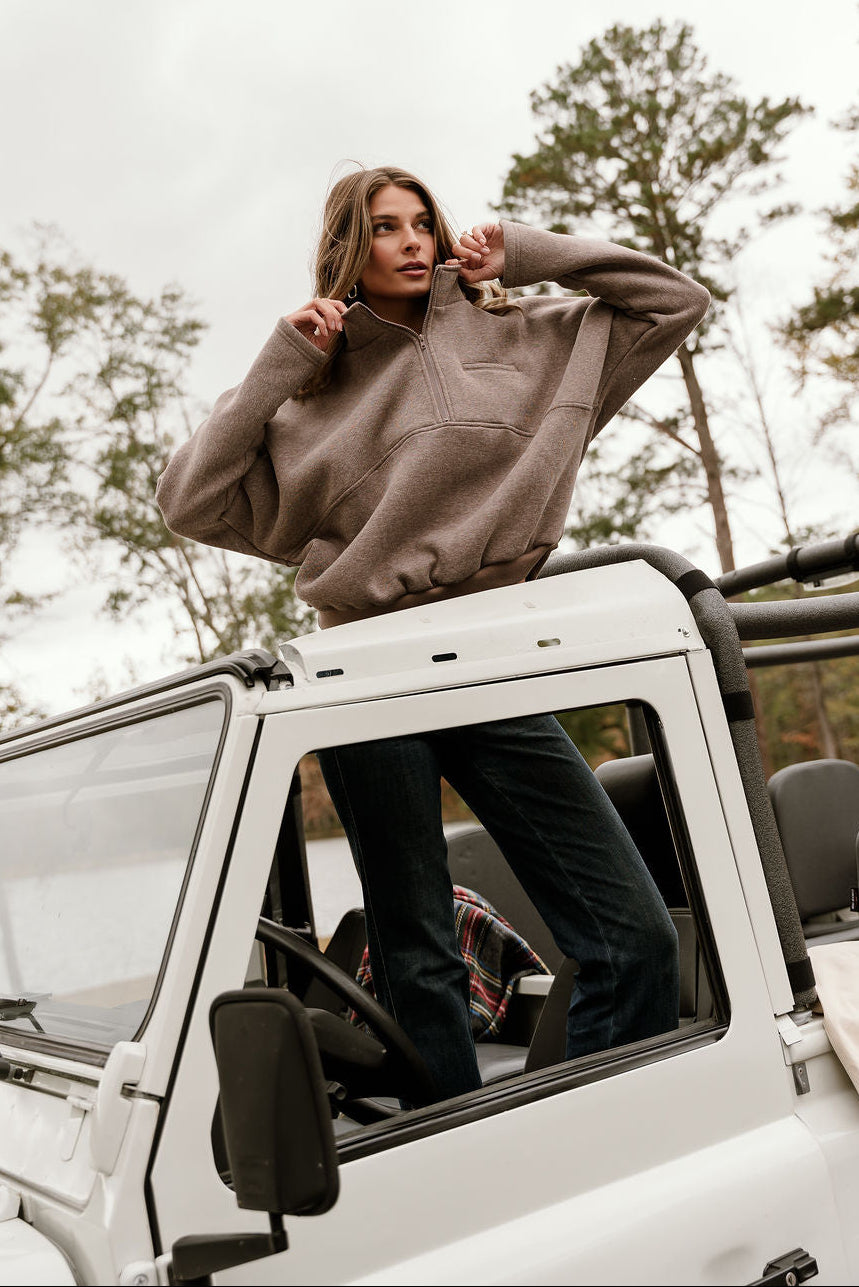 Dakota Brown Heather Quarter Zip Pullover