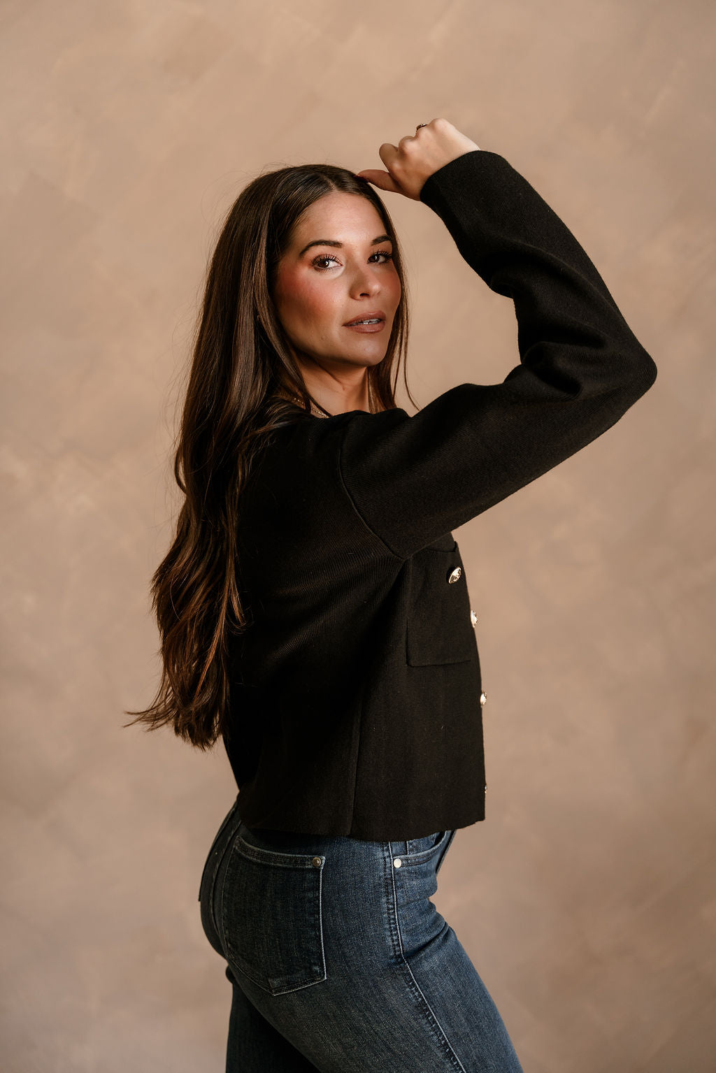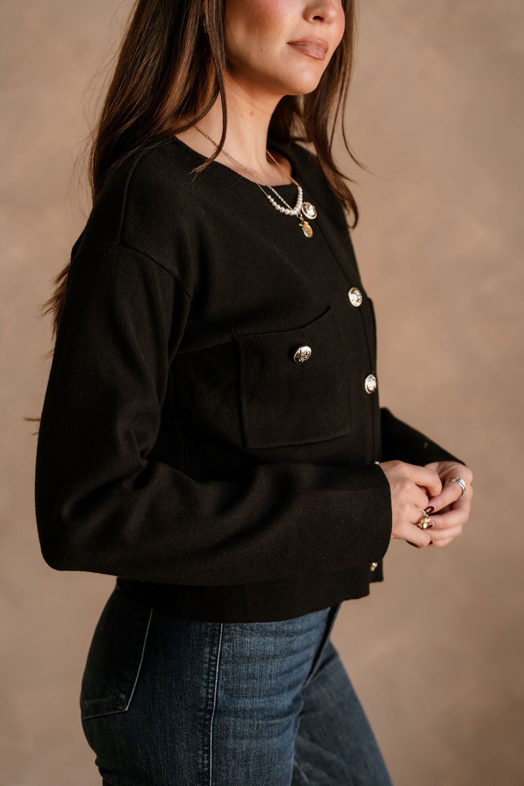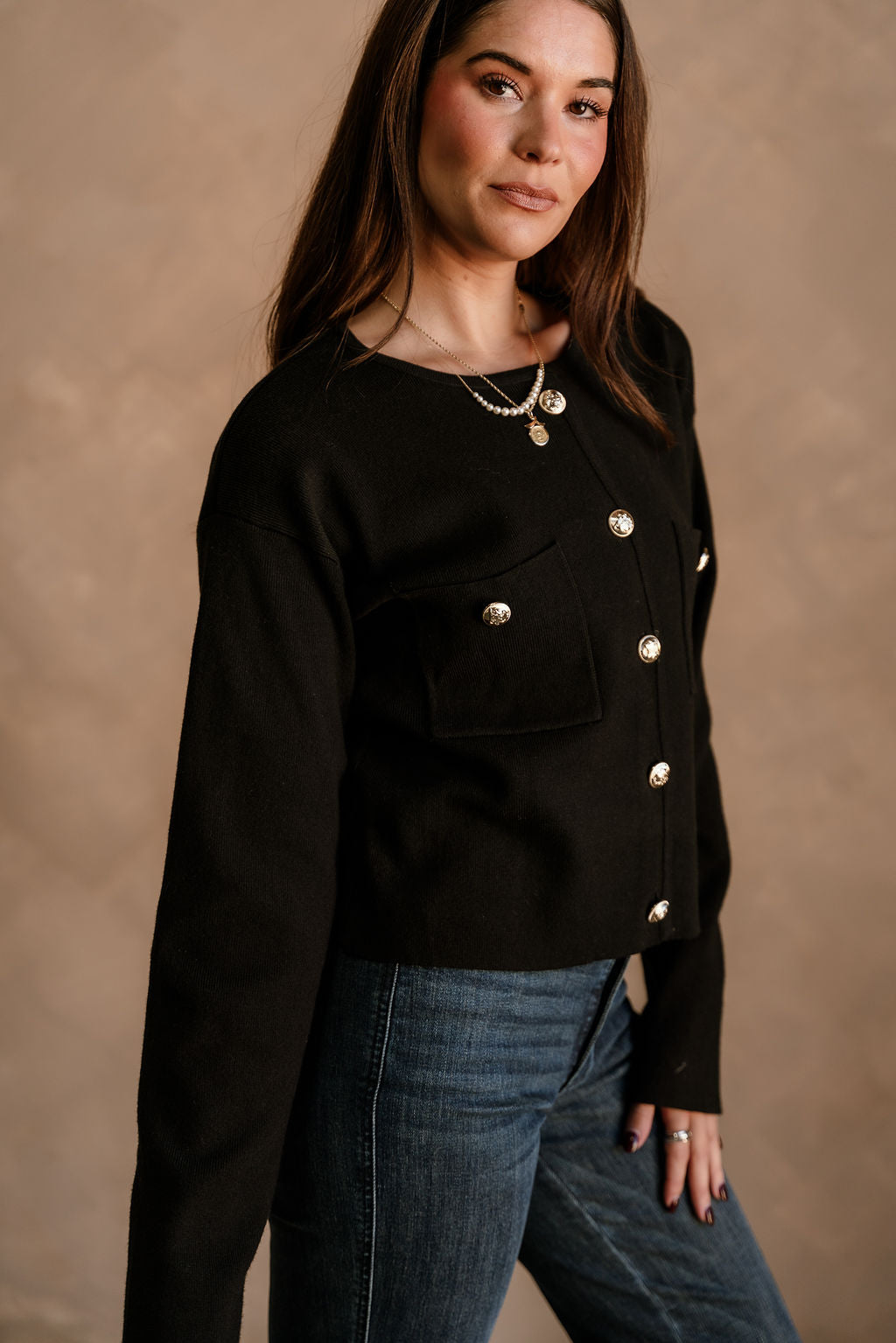 Delaney Black & Gold Button-Up Pocket Cardigan