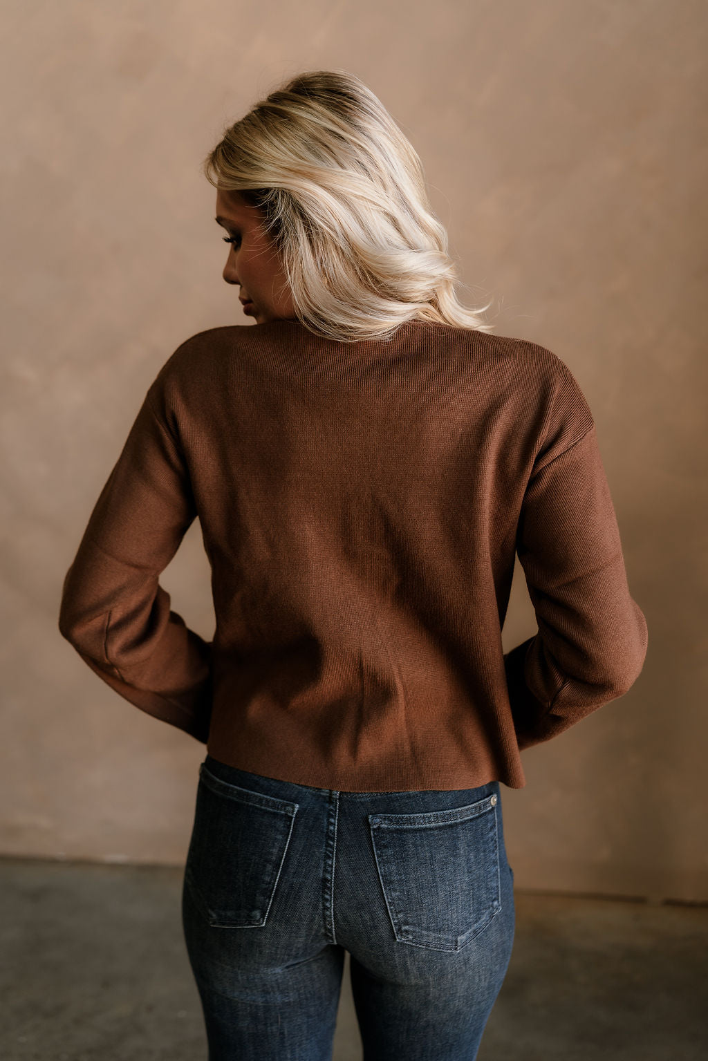 The Delaney Brown & Gold Button-Up Pocket Cardigan is a rich, warm-toned layer crafted from brown ribbed knit fabric that brings texture and comfort to any outfit. Designed with a round neckline and long sleeves, it offers a classic fit that’s perfect for both casual days and polished looks. The ribbed construction adds structure while still feeling soft and cozy for all-day wear.